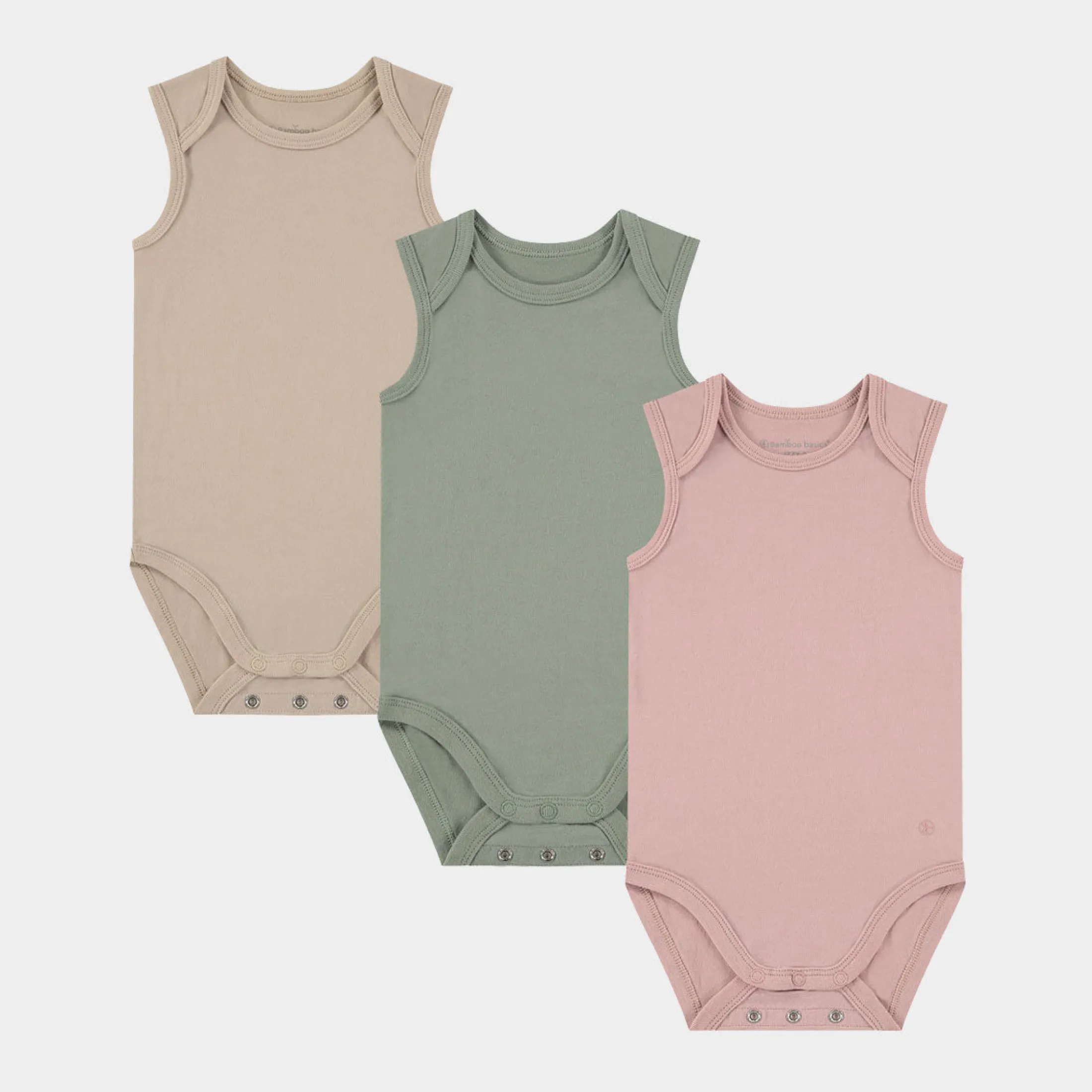 I denne pakke får du 1x lyserød, 1x grøn og 1x beige body uden ærmer.