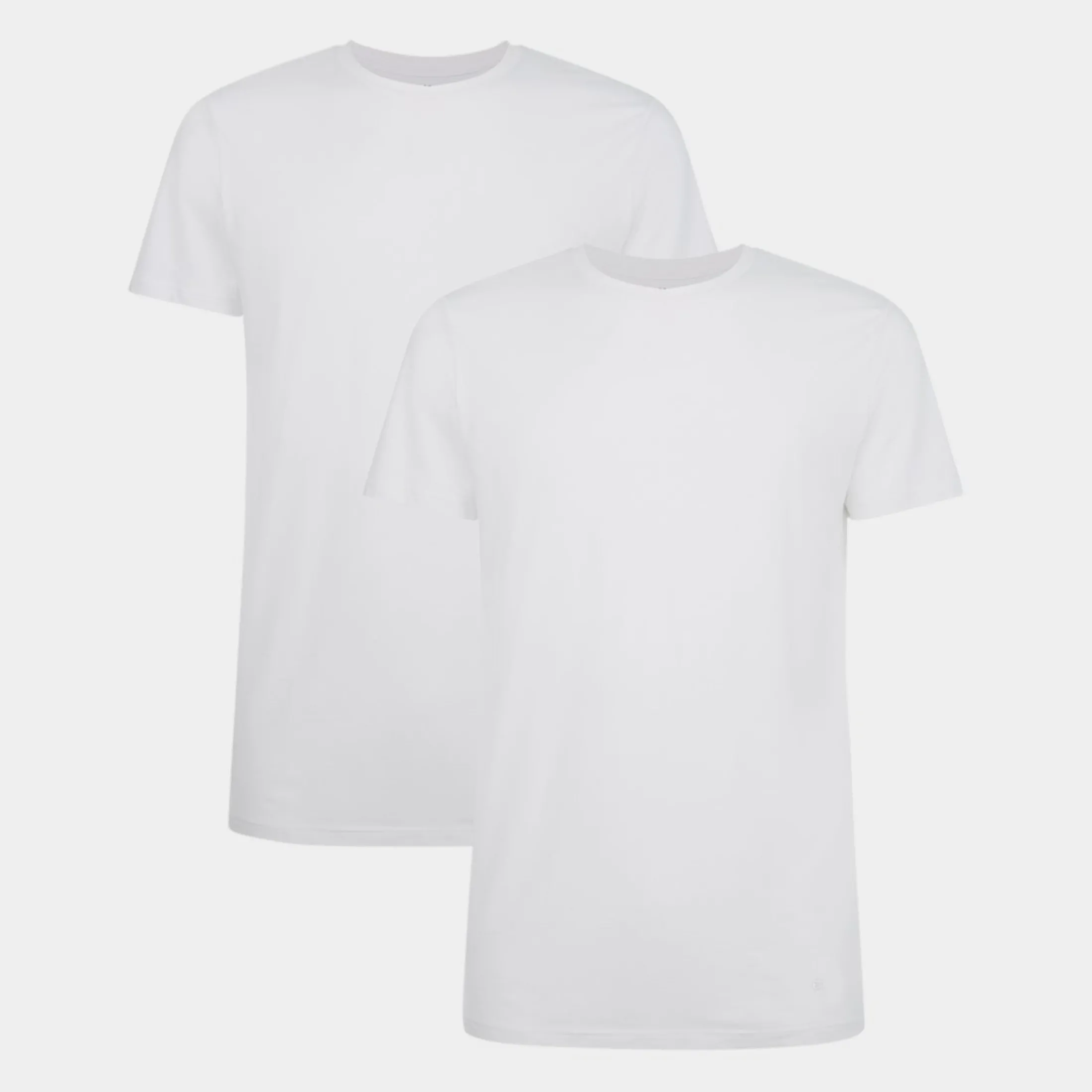 2 stk hvide T-shirts r-neck i bambus, fra Bamboo Basics. Bambus er et åndbart og naturligt absorberende materiale, som holder dig frisk hele dagen.