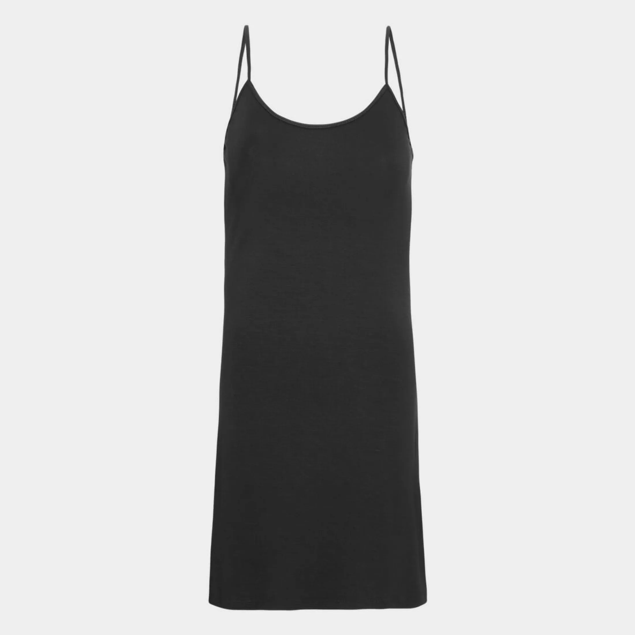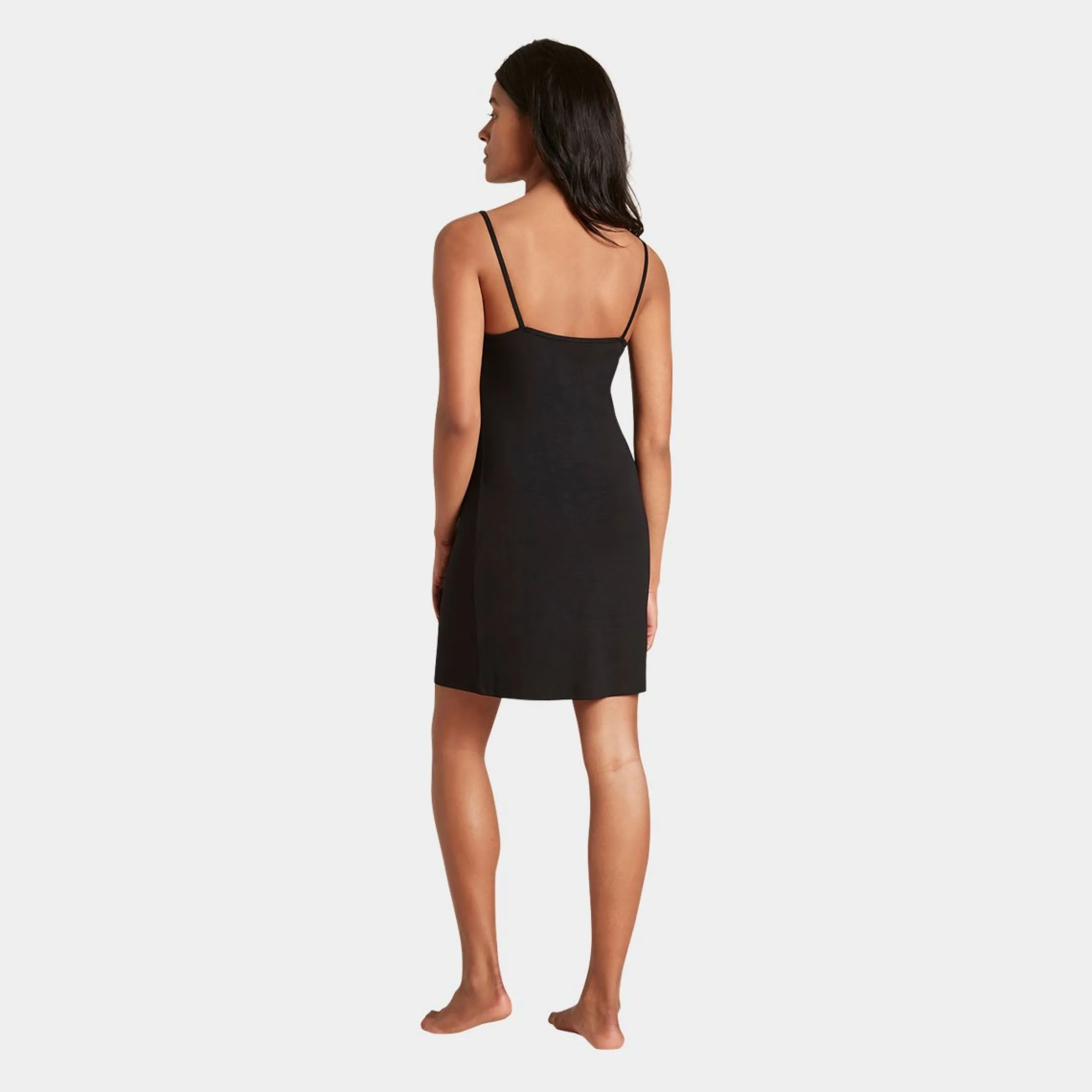 Super blød og komfortabel underkjole i bambus fra Boody. Perfekt til at have på under dine mørke kjoler eller bare til at slappe af i derhjemme. Den har en løs pasform, spaghettistropper og går til midt på låret.