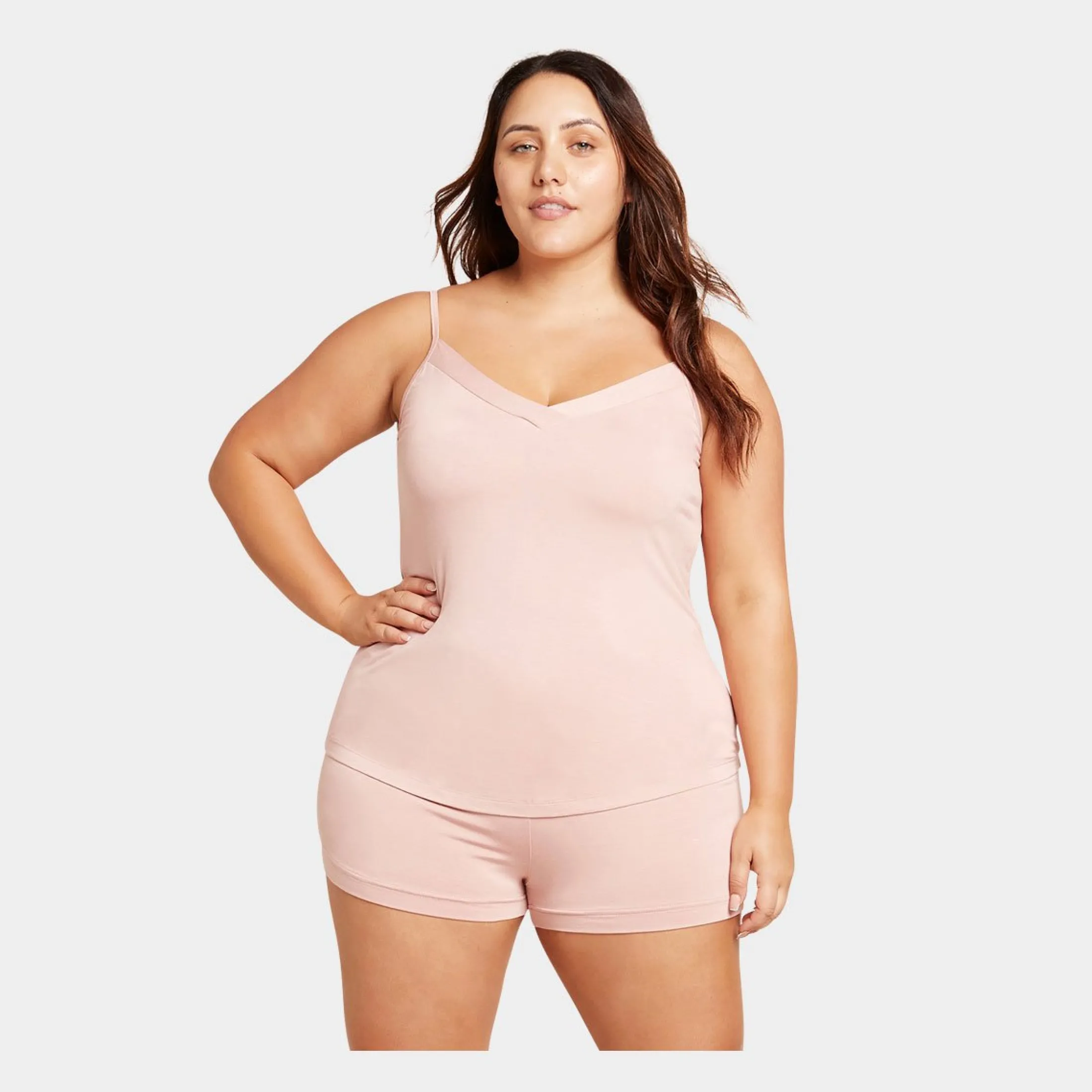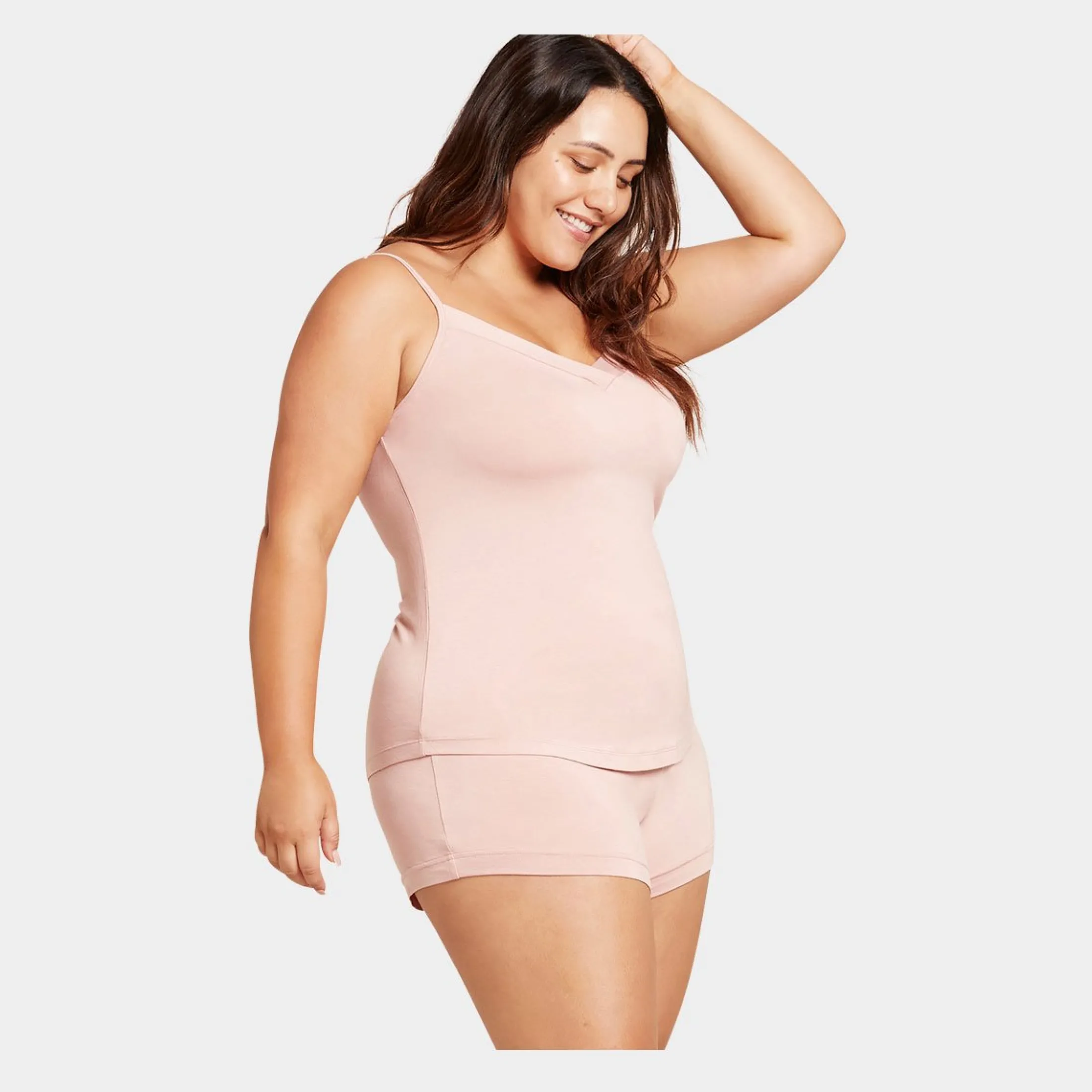 Denne bambus nattop fra Boody har spaghettistropper og en flot v-udskæring med krydsende bånd. Toppen er med sin løse pasform og kurvede søm perfekt både til hygge derhjemme eller sammen med et par shorts på en varm sommerdag.