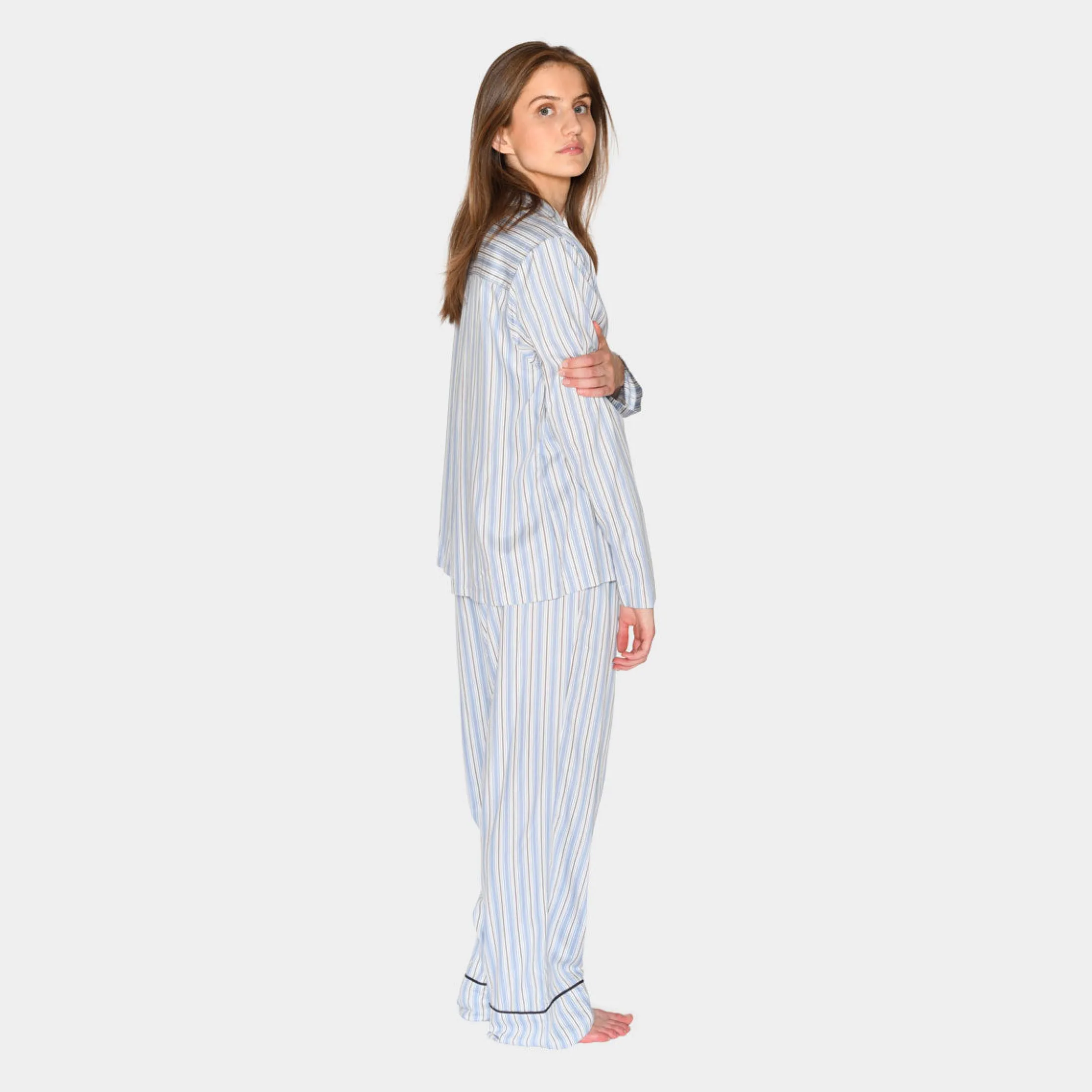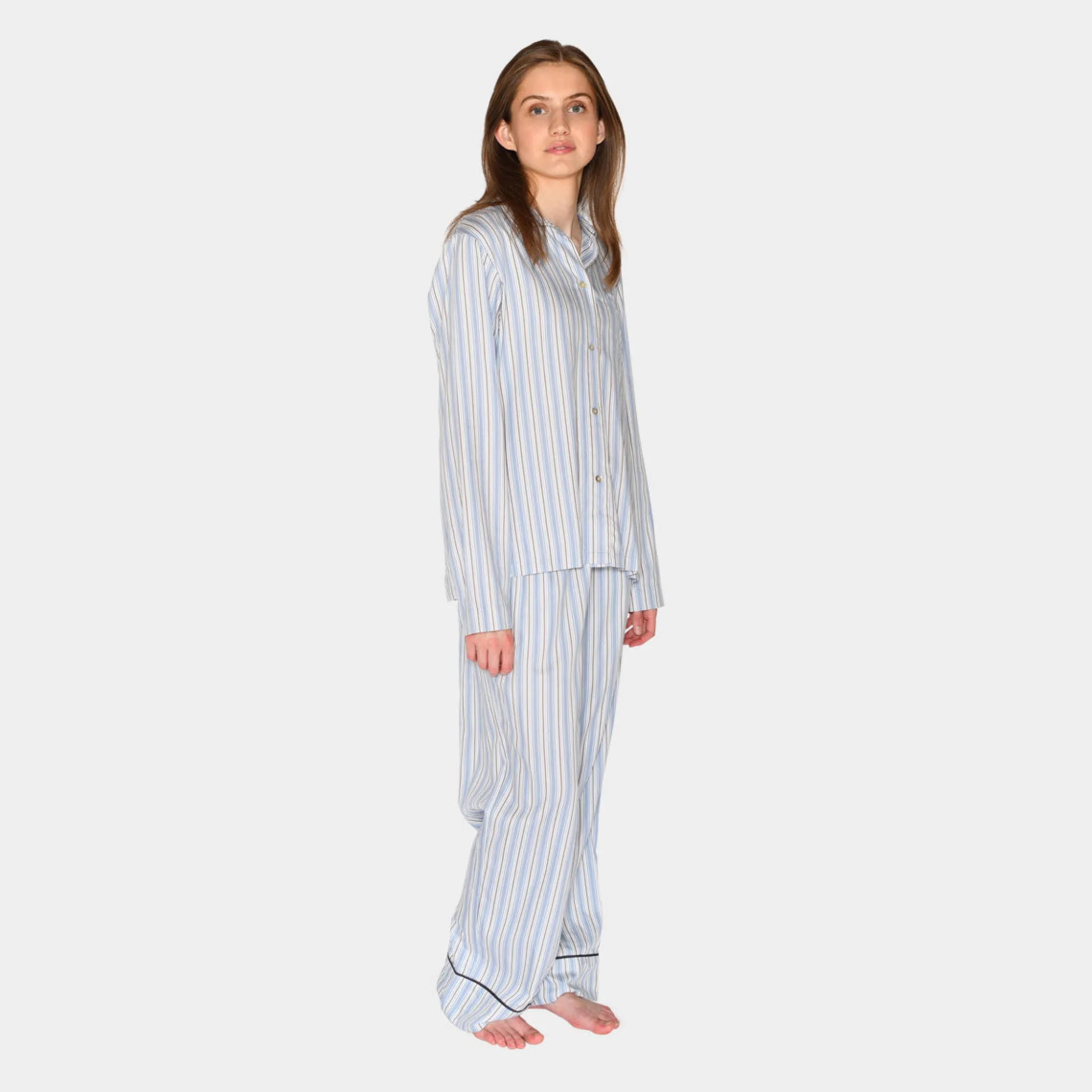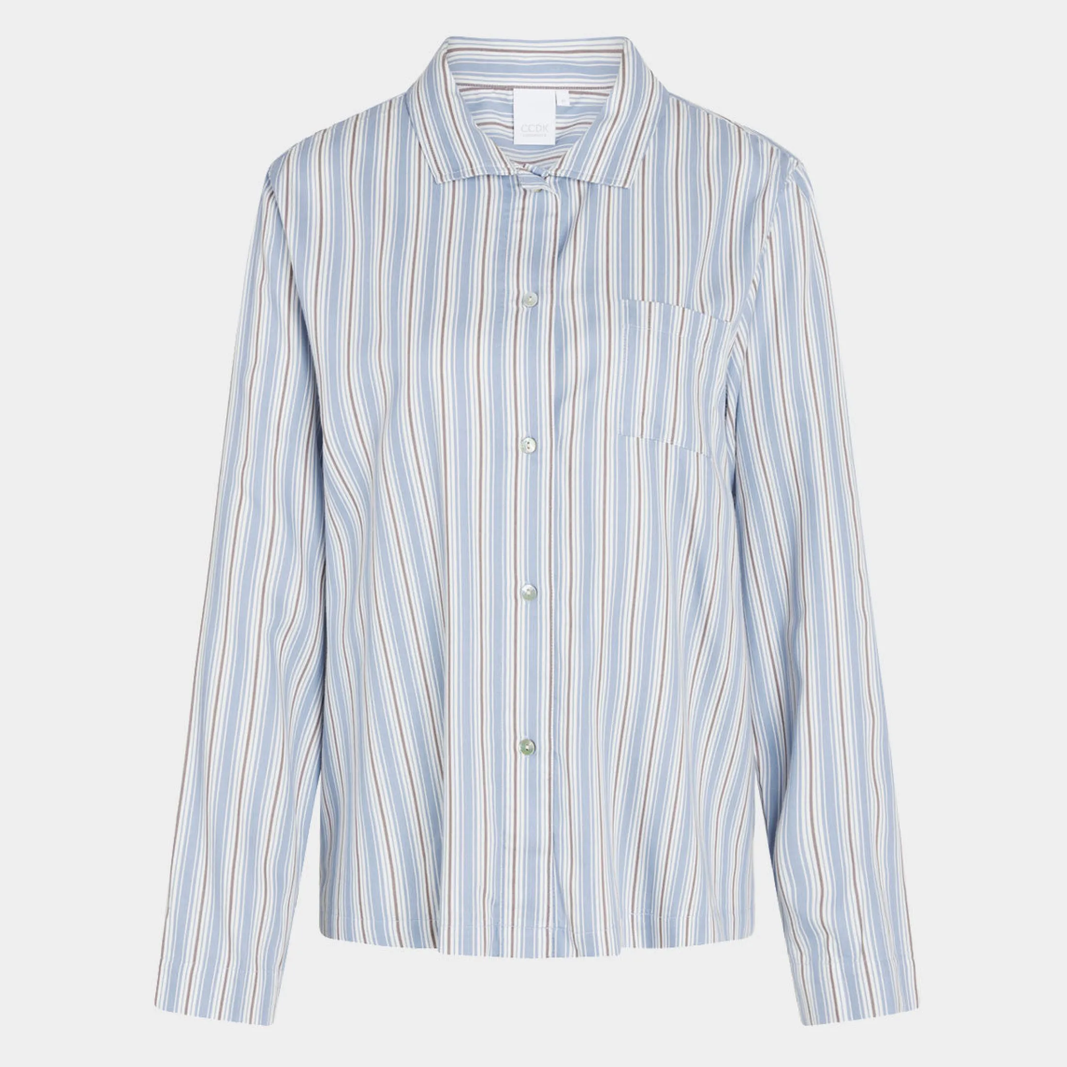 Sød natskjorte med blå, hvide og grå striber fra CCDK. Natskjorten har brystlomme, klassisk skjortekrave og lukkes med fine perlemorsknapper.