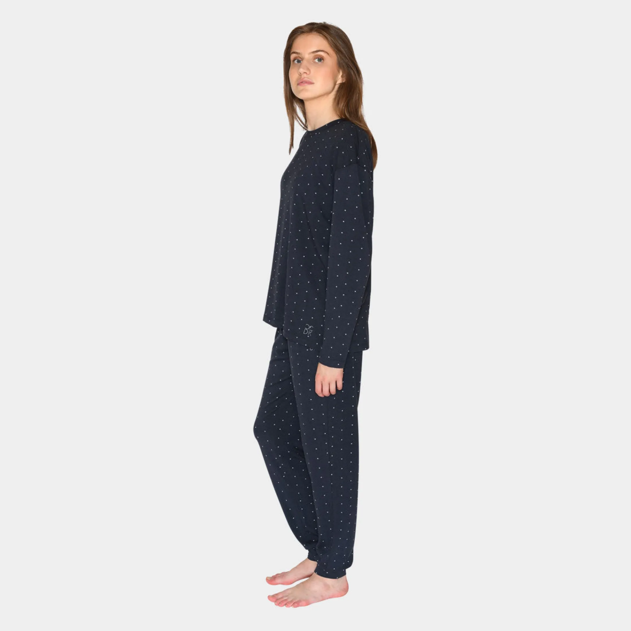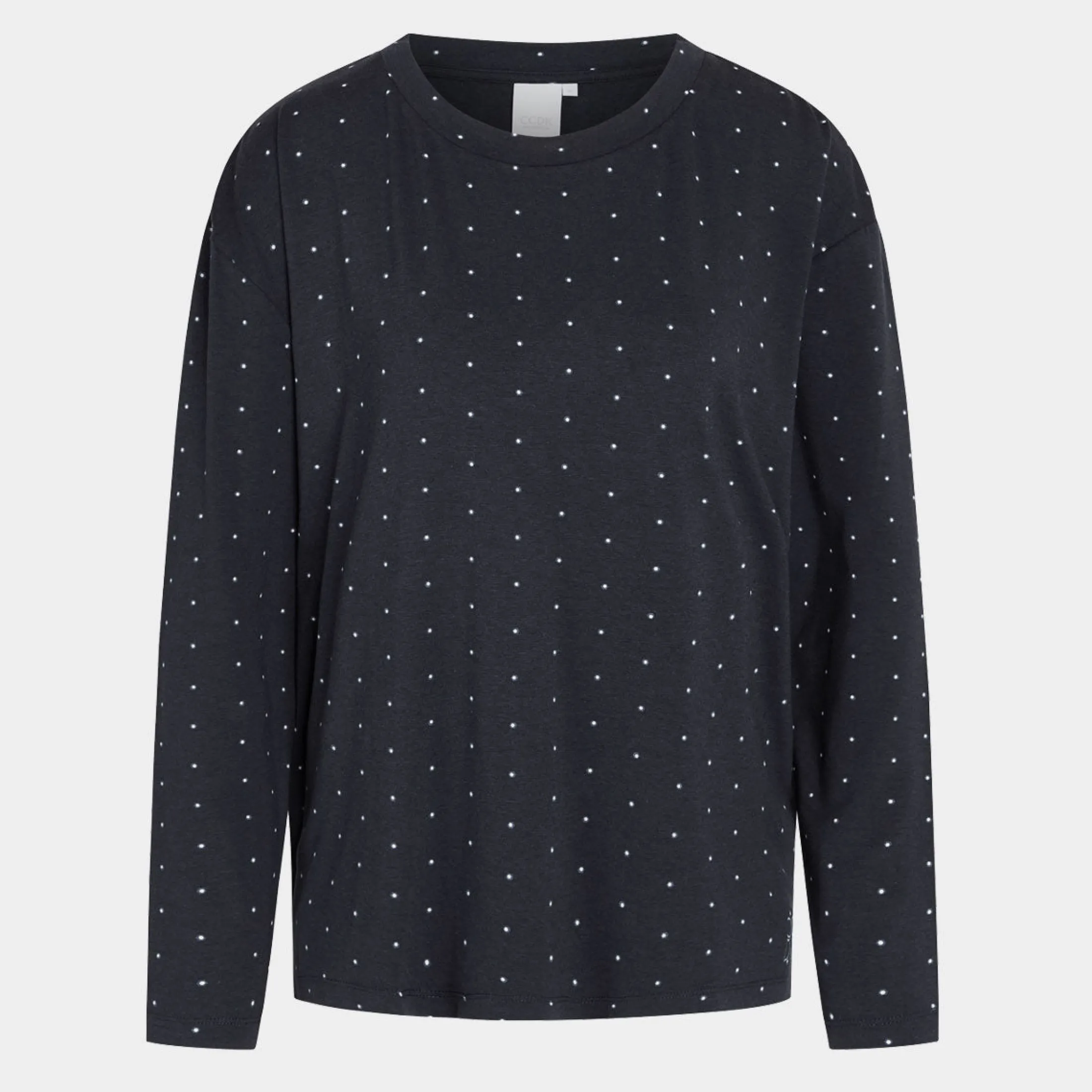 Sød langærmet bambus nattrøje i navy med prikker, fra CCDK. Perfekt til kølige nætter og hyggelige søndage hjemme.