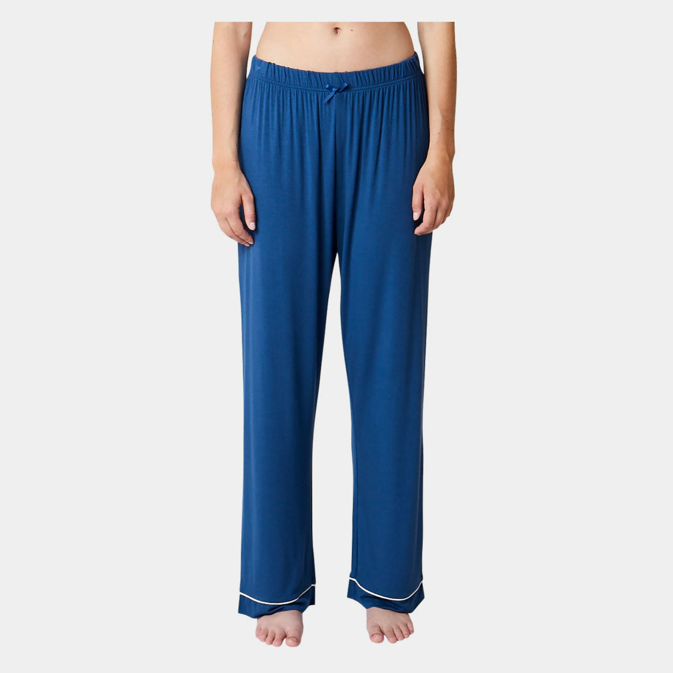 Klassiske bambus natbukser i støvet. Natbukserne er detaljeret med hvid tittekant nederst på benene, har elastiklinning med en lille påsyet sløjfe i satinbånd.
