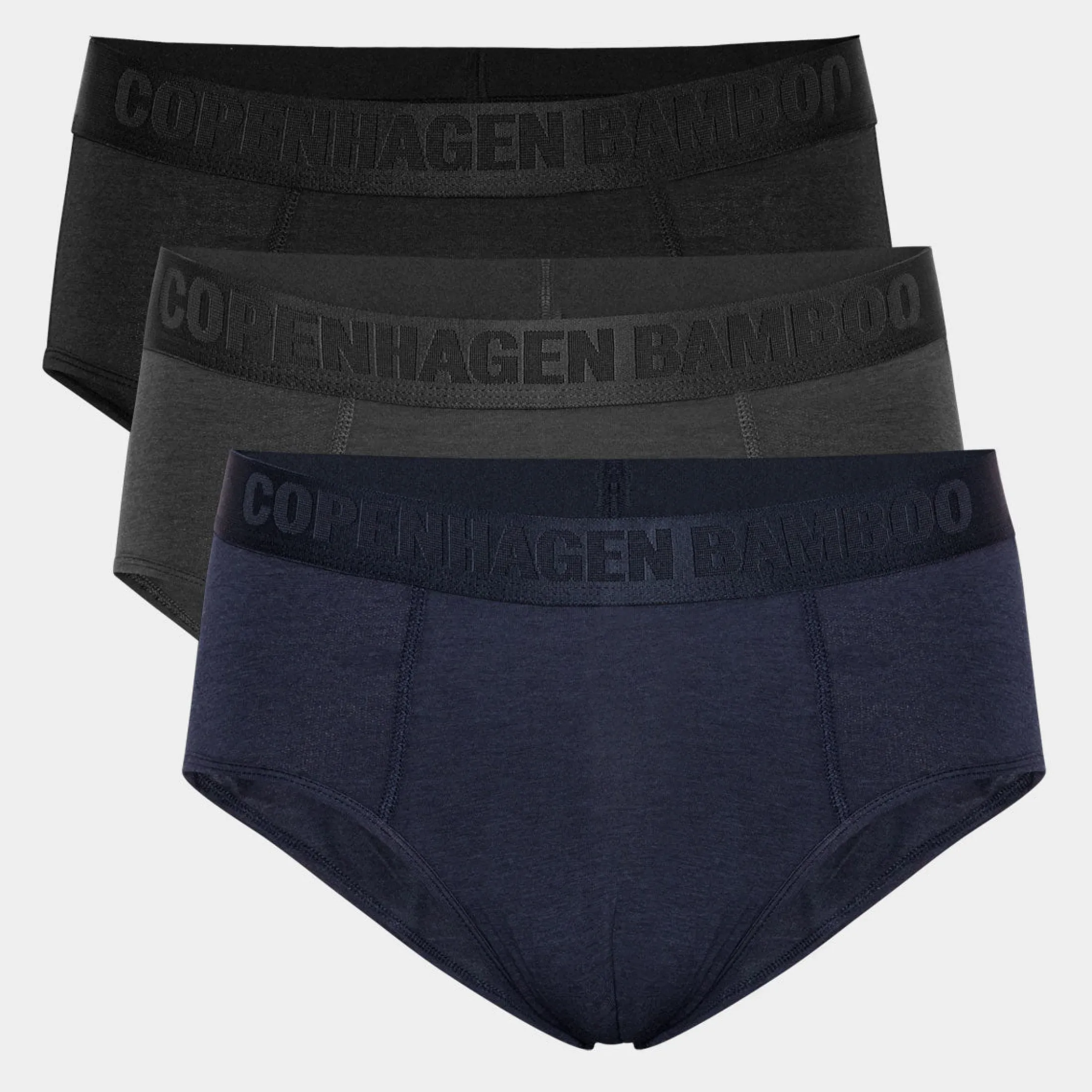 Denne 3 pak underbukser fra Copenhagen Bamboo indeholder 3 par silke bløde herretrusser i farverne sort, grå og navy.