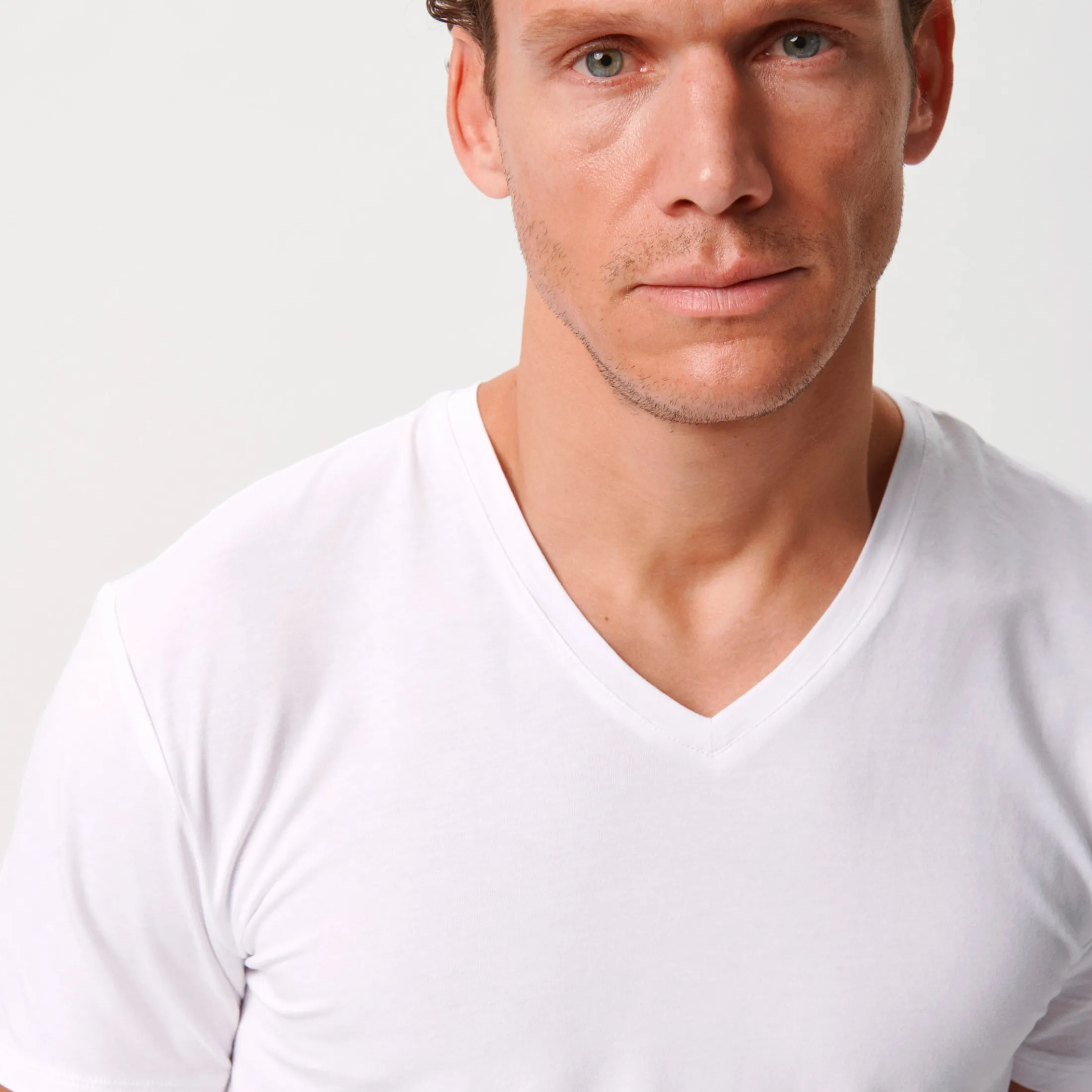 Disse hvide slim fit T-shirts fra Copenhagen Bamboo har v-hals og er perfekte at have på under en skjorte eller til et par jeans. Bambussen er bl.a. åndbar og temperaturregulerende hvilket gør den behagelig at have på selv på de hårde arbejdsdage.