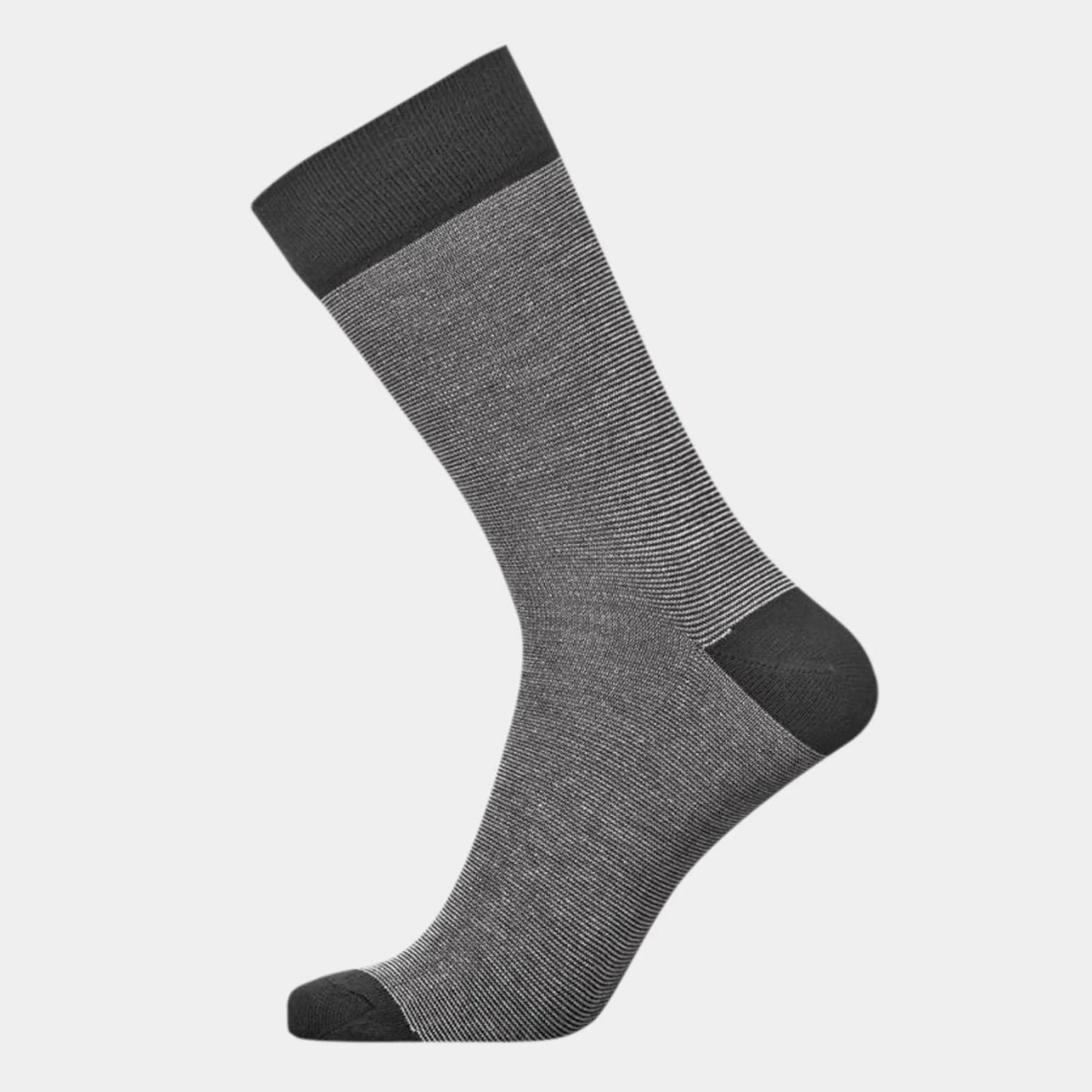 Super fede herre bambus strømper i lækker 5 pak, som er mørkegrå stribet og dejlig bløde at have på. Bambusstrømperne fra Egtved er åndbare.