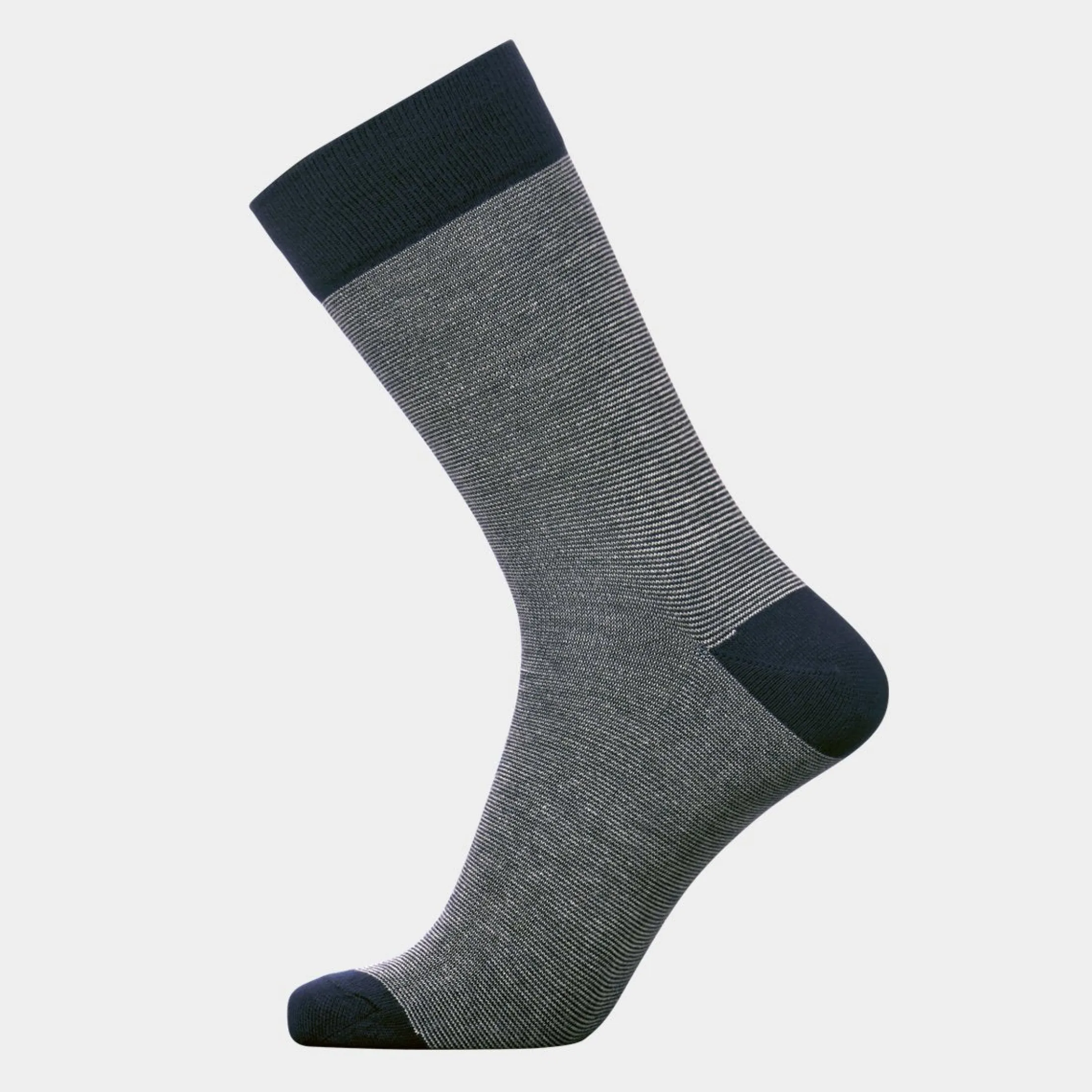 5 par navyblå bambus strømper med striber til mænd, i flot og lækker kvalitet. Strømperne er åndbare og holder dine fødder luftige hele dagen i dine sko.