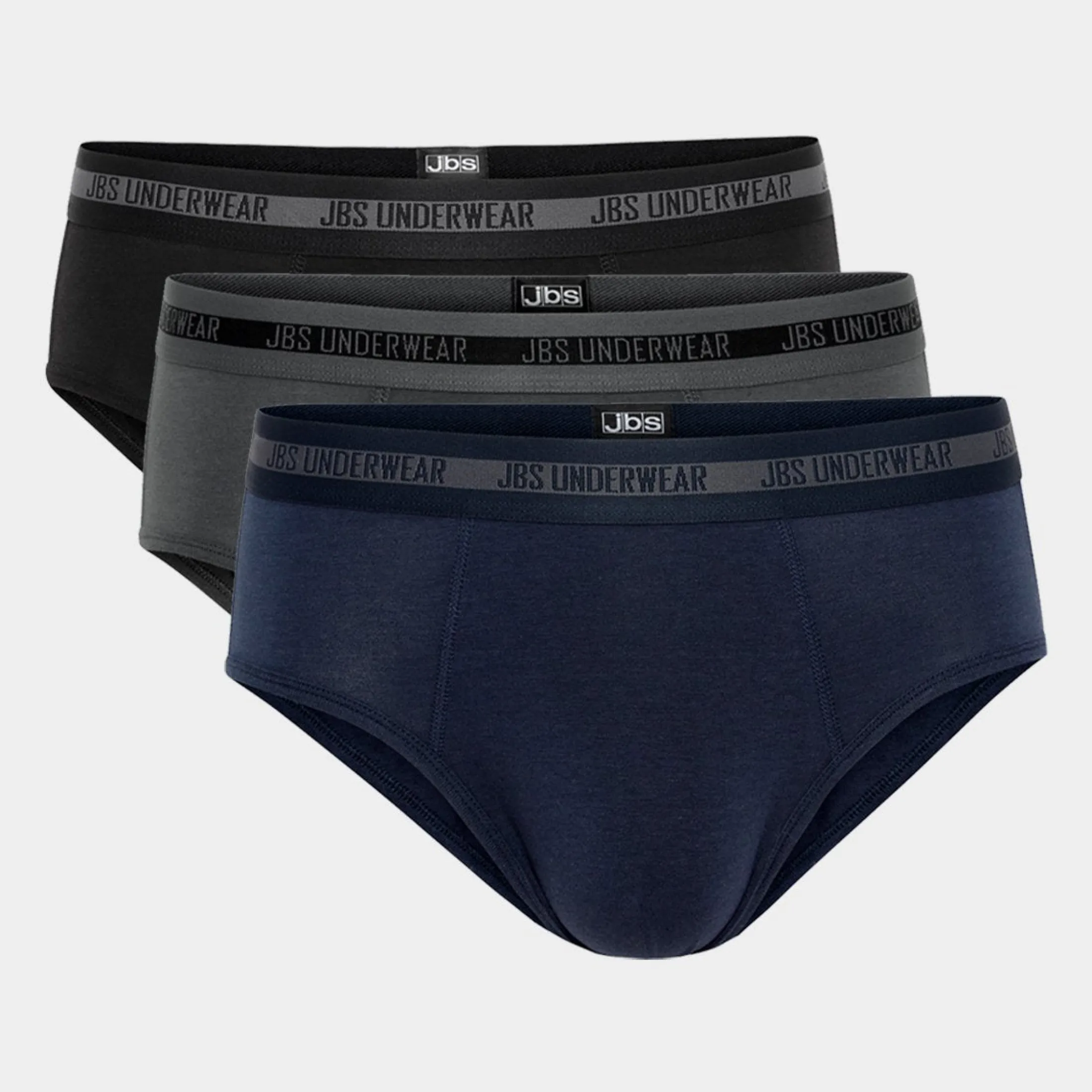3 par JBS bambus herre trusser i sort, grå og navy. De bløde bambusfibre gør, at du vil opleve at de sidder godt og behageligt på kroppen hele dagen, samtidigt med, at det er åndbart og svedtransporterende. Bambus er det perfekte materiale til underbukser.