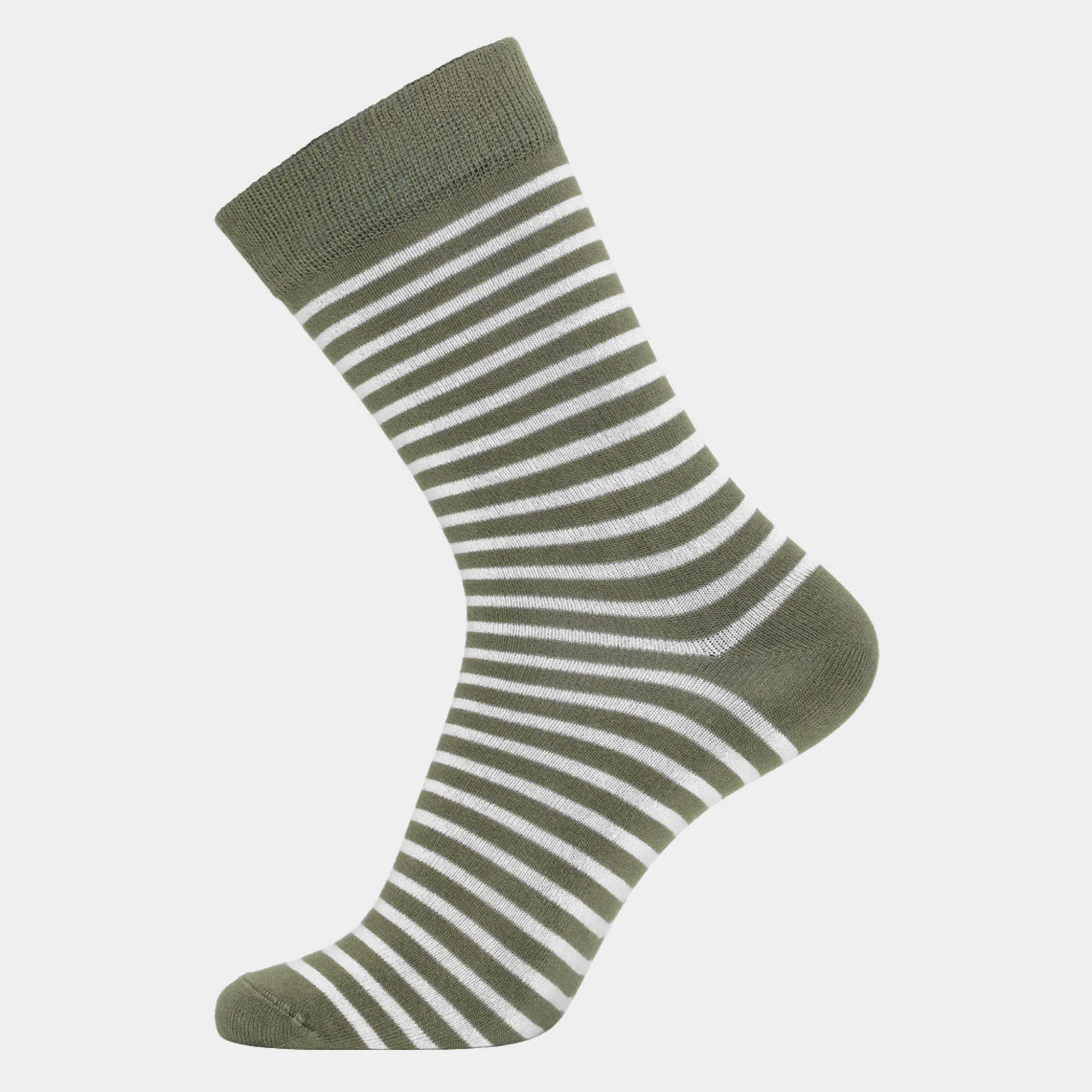 I denne pakke får du 2 par navy og 3 par med striber – sort/beige, navy/lyseblå, grøn/lyseblå.