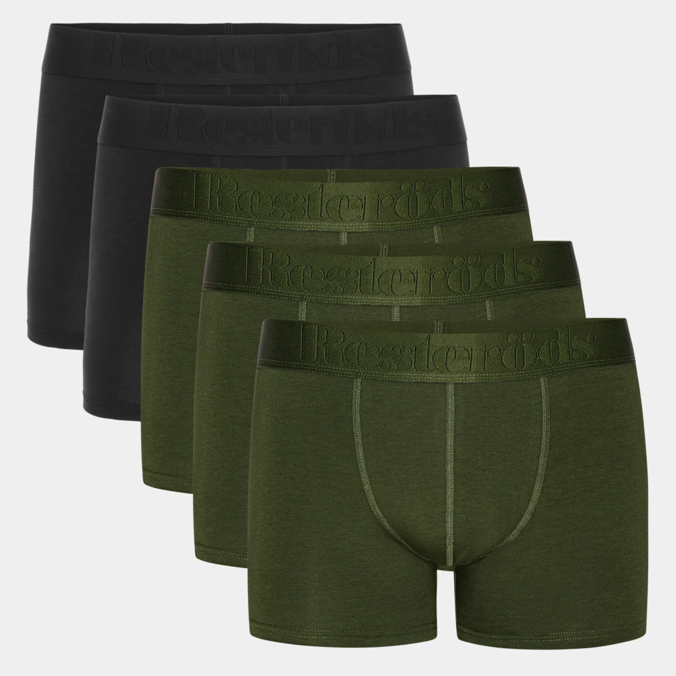 De kommer i en 5 pak til dig, som vil have lidt mere for pengene. Pakken indeholder 3 par grønne og 2 par sorte underbukser.