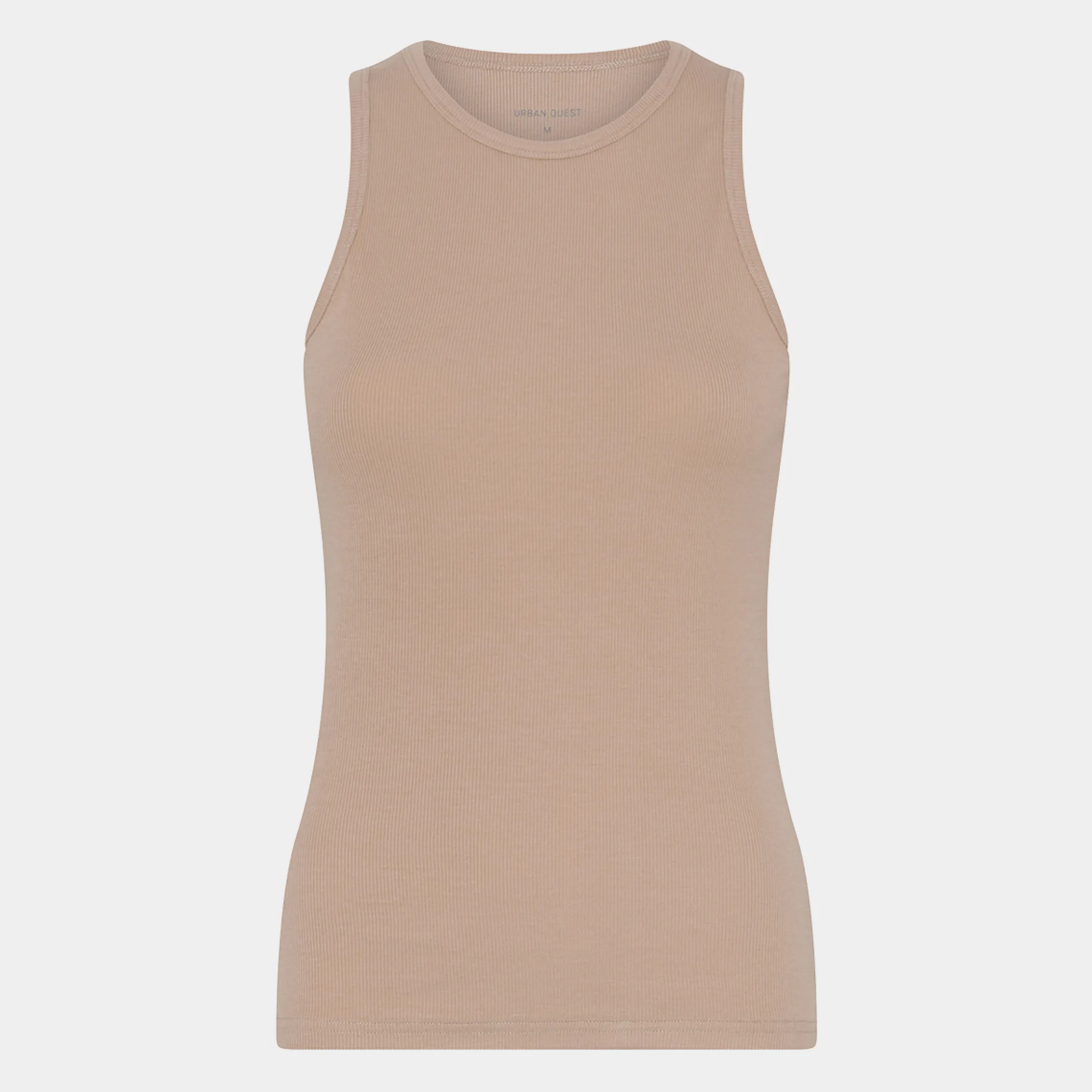 Nude farvet bambus tank top i rib kvalitet fra Urban Quest. Toppen har dobbeltkanter i halsåbning og ærmegab. Toppen kan bruges til et hav af kombinationer, f.eks. under en skjorte, sammen med et par jeans eller blot til at sove i.