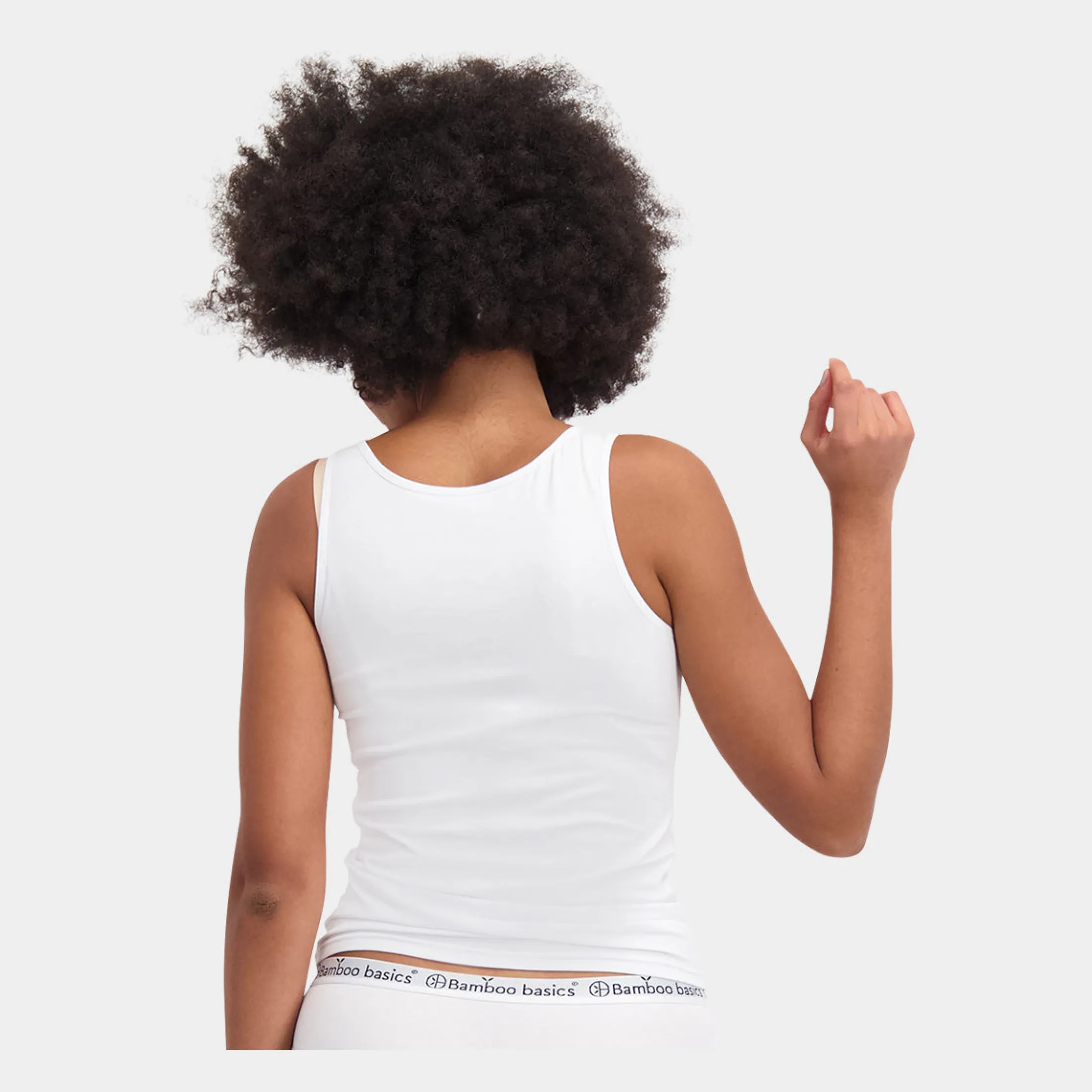 2 hvide tank tops i silkeblød bambus fra Bamboo Basics. Toppen sidder tæt på kroppen og er stretchy, som giver den perfekte pasform. Udover at toppen sidder pænt og er behagelig blød, er den også åndbar, absorberende og svedtransporterende.