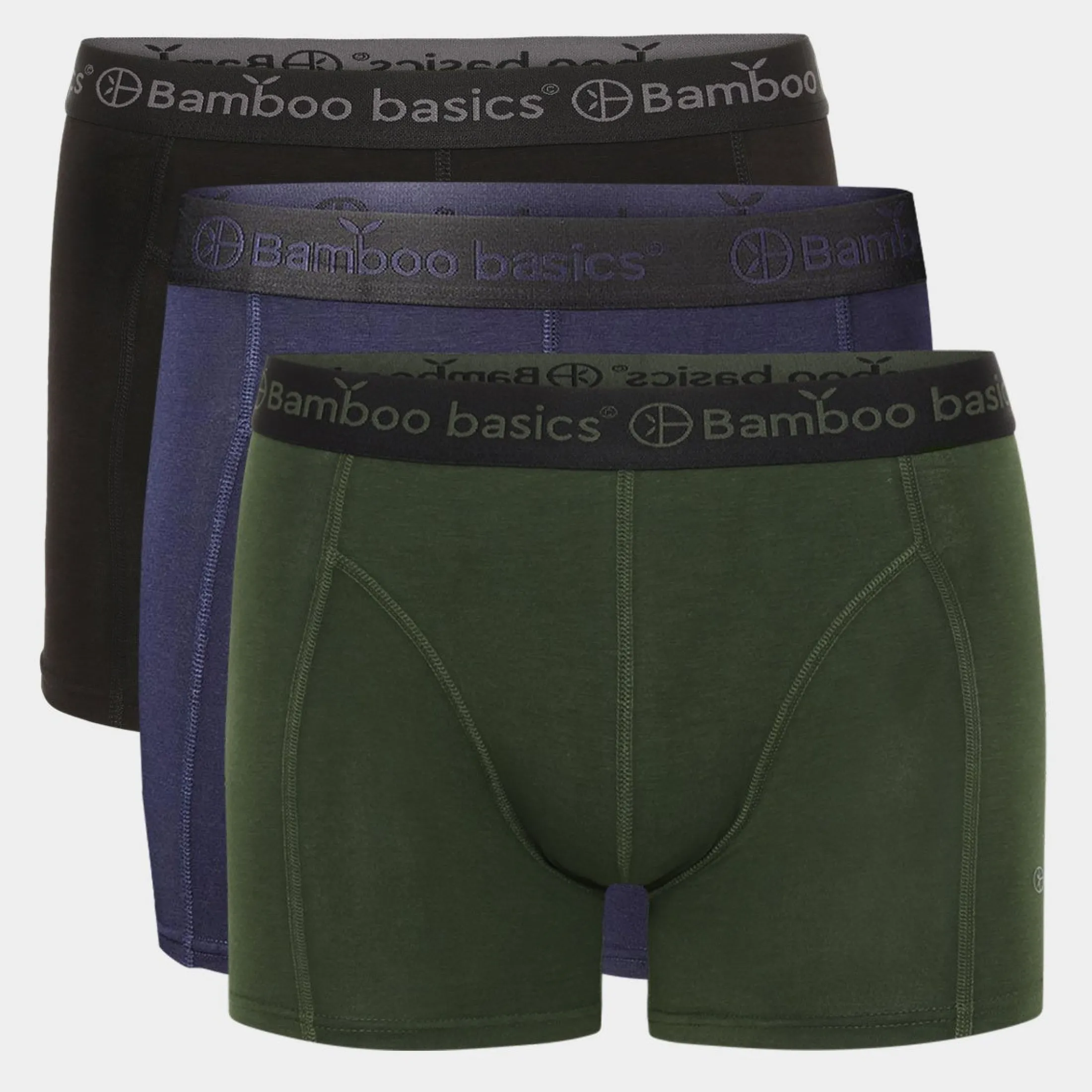 3 par bambus underbukser fra Bamboo Basics, i farverne sort navy og army. Høj kvalitet til en rigtig god pris. Perfekt pasform som gør dem meget behagelige at gå i, samtidigt med at bambussen er det perfekte materiale til underbukser, da det b.la. er svedtransporterende og åndbar.