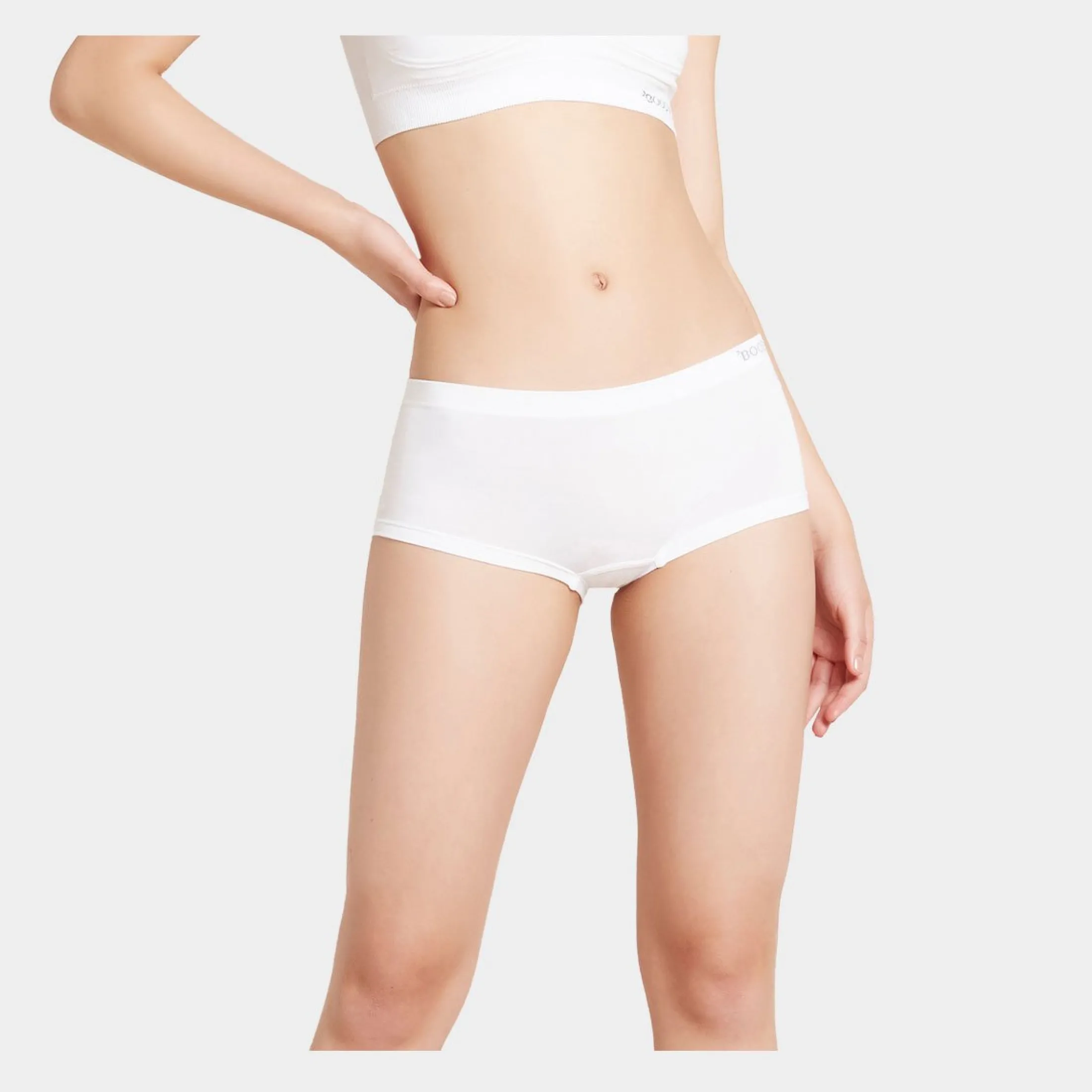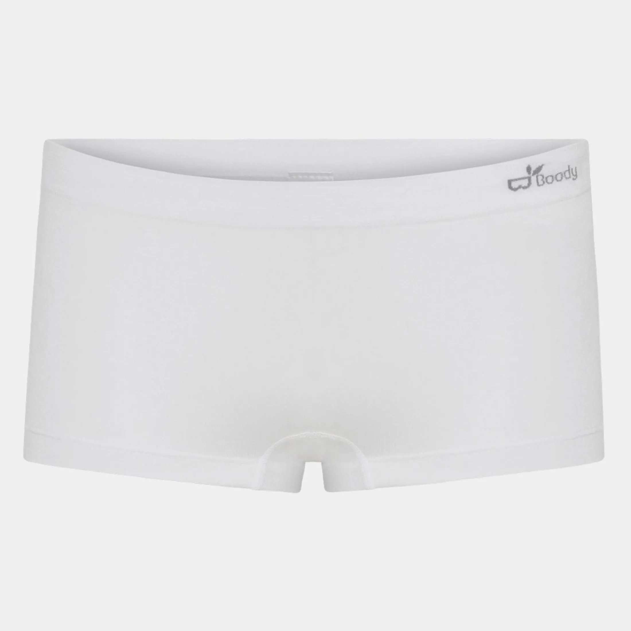 Disse hvide bambus hotpants har en linning der er vævet ud i et med trussen, ingen sidesømme og ombukkede kanter i benåbningen. Bambus er bl.a. åndbart, hvilket gør materialet perfekt til undertøj.