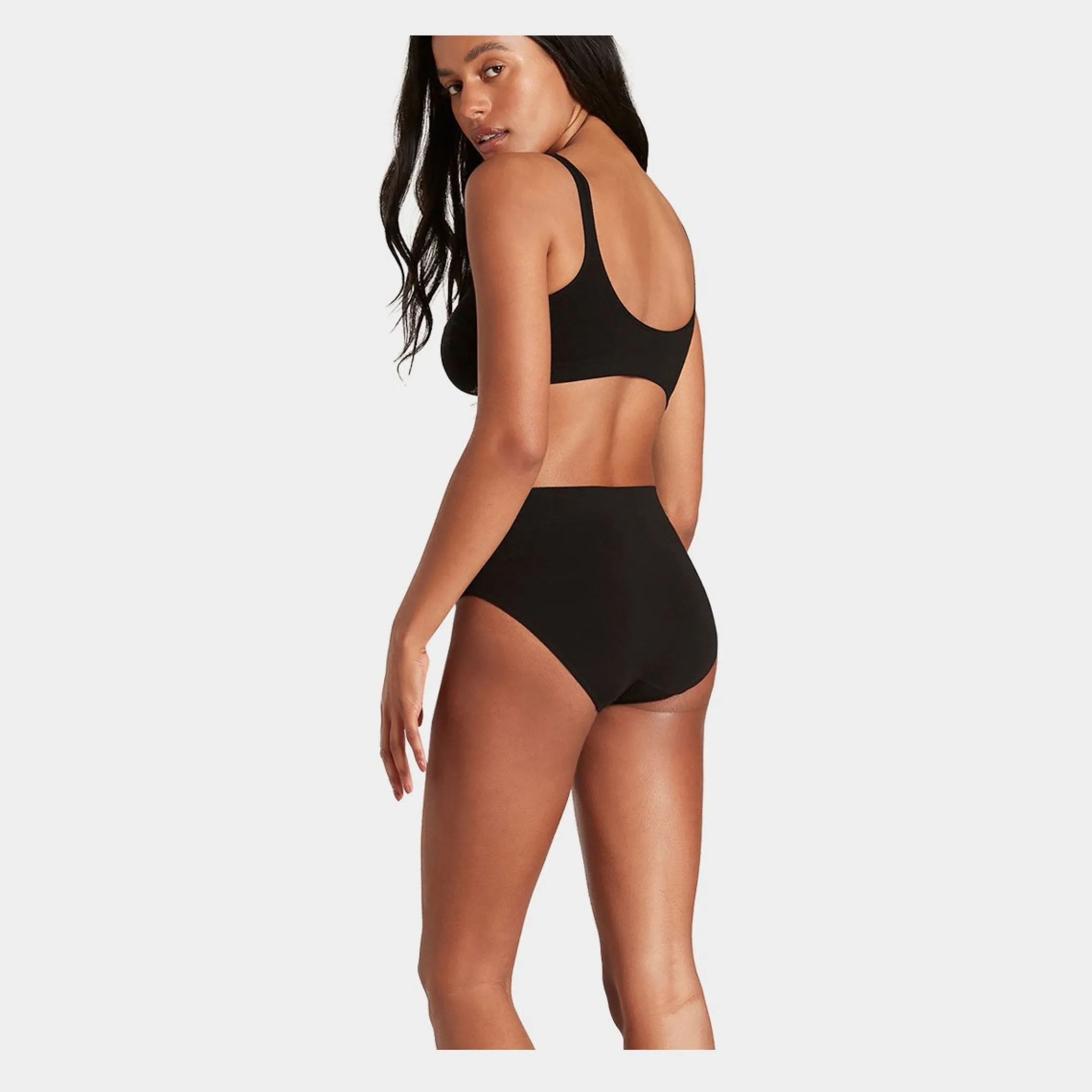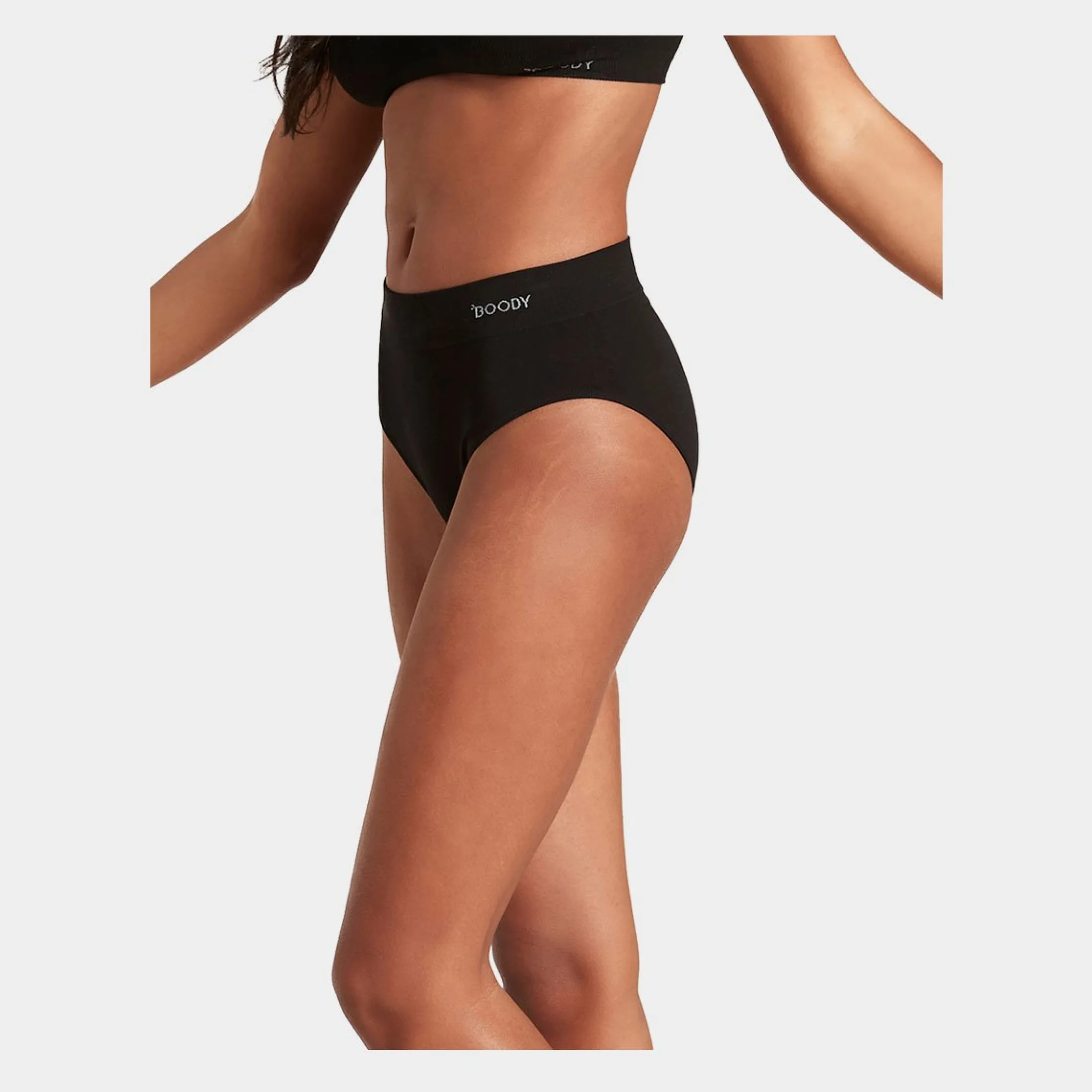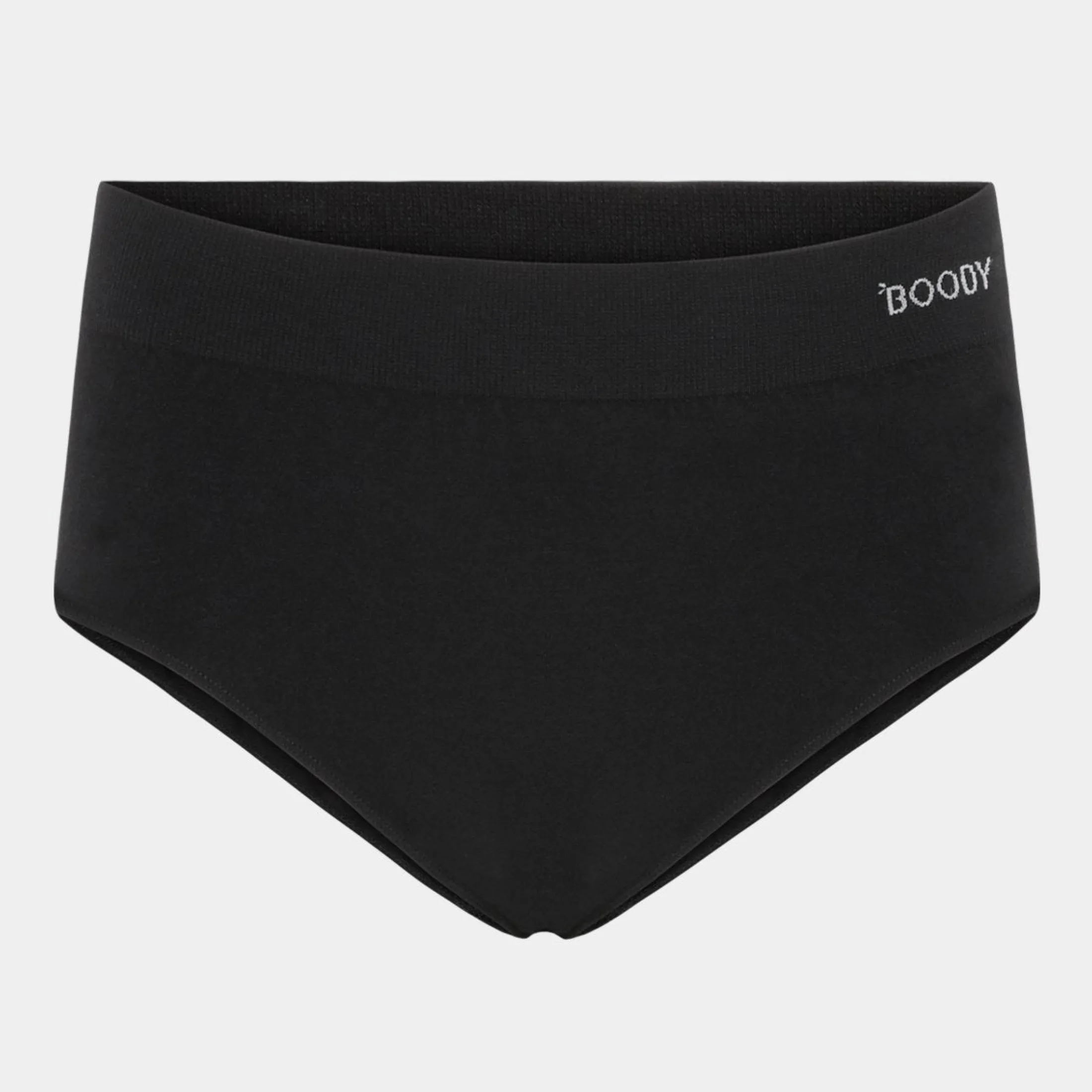 Disse sorte bambus maxitrusser har en høj talje og god dækning af ballerne. Linningen er vævet som en del af trusserne, der ikke nogen sidesømme og sømmen i benåbningen er foldet. Trusserne er super bløde og bambussen er åndbar, hvilket gør det perfekt til undertøj.