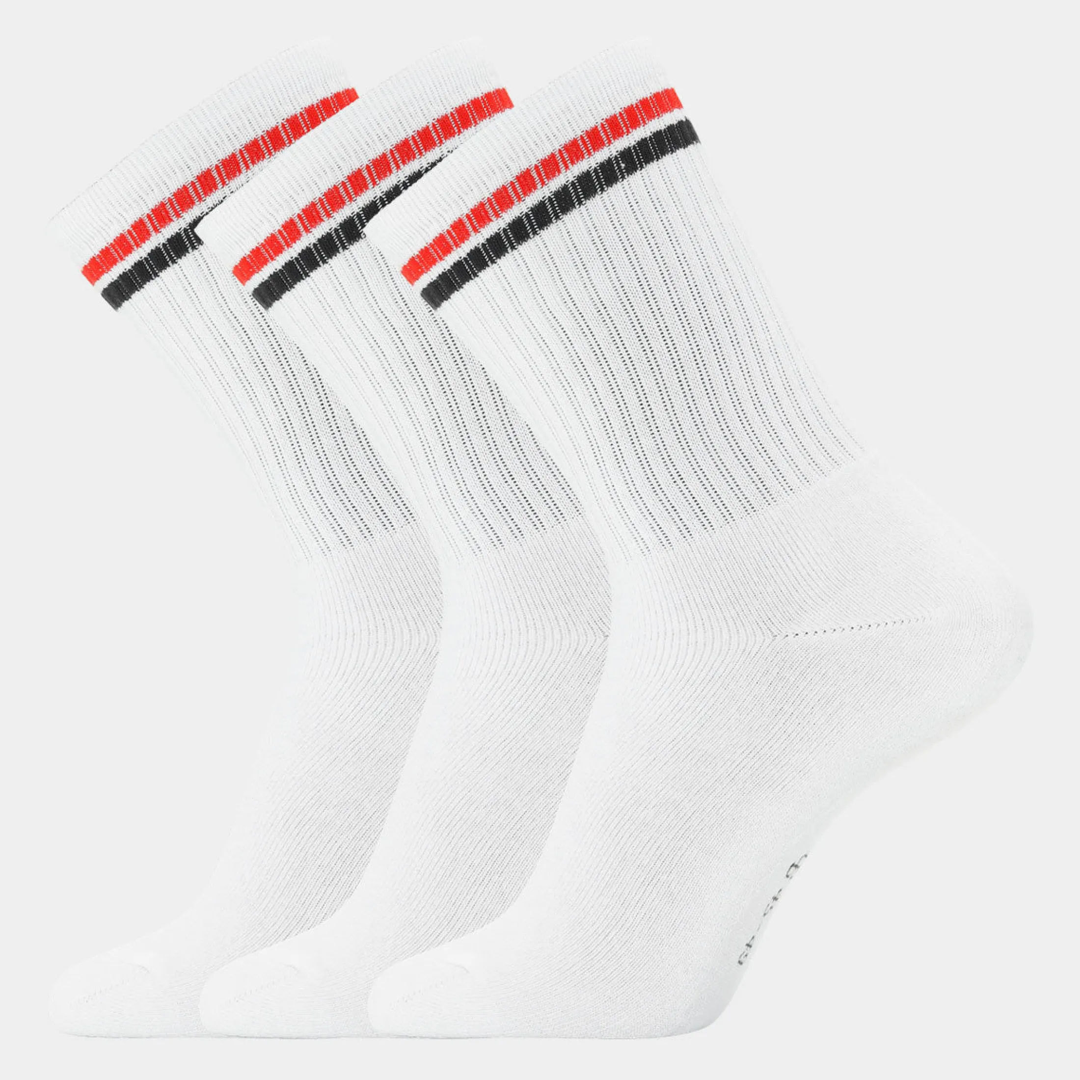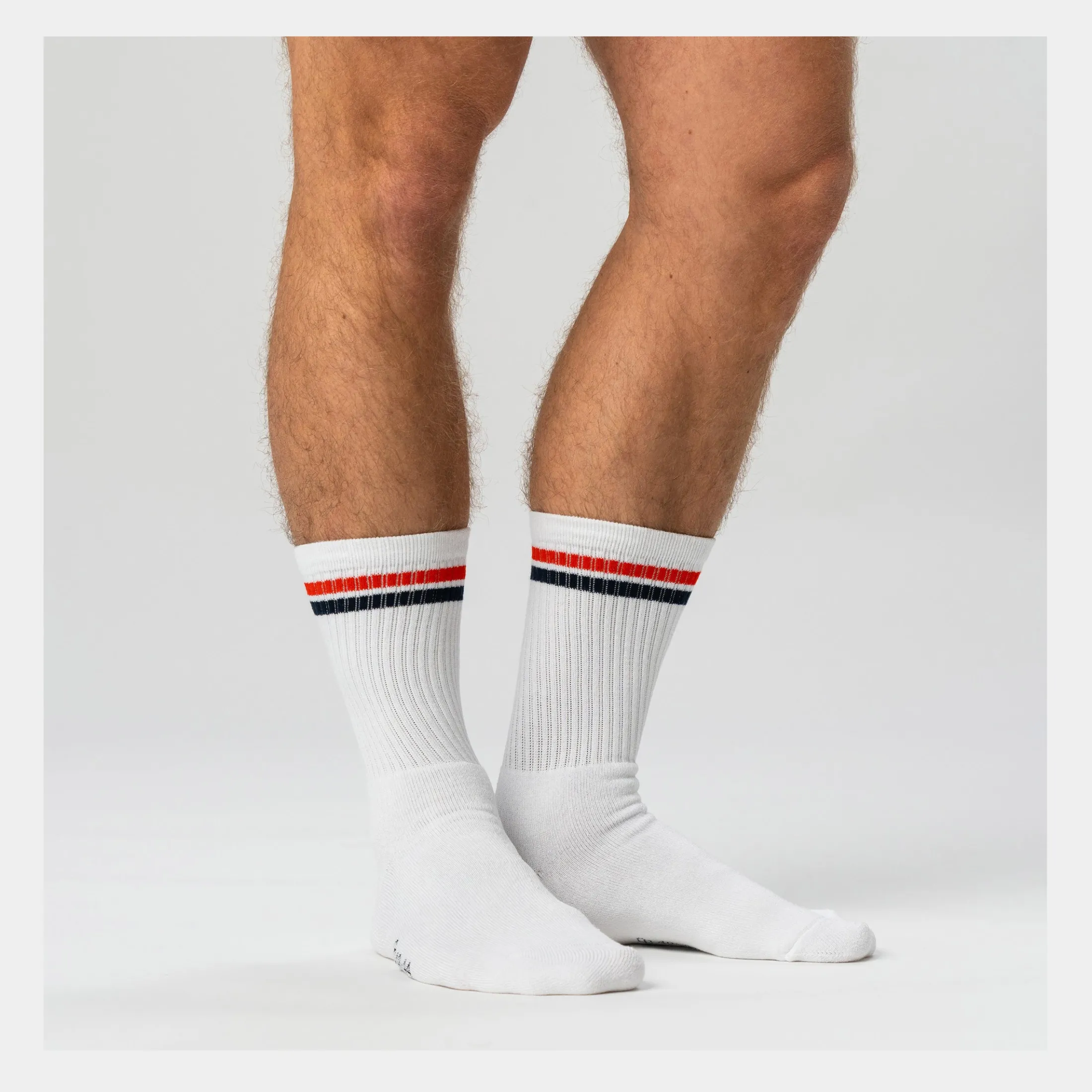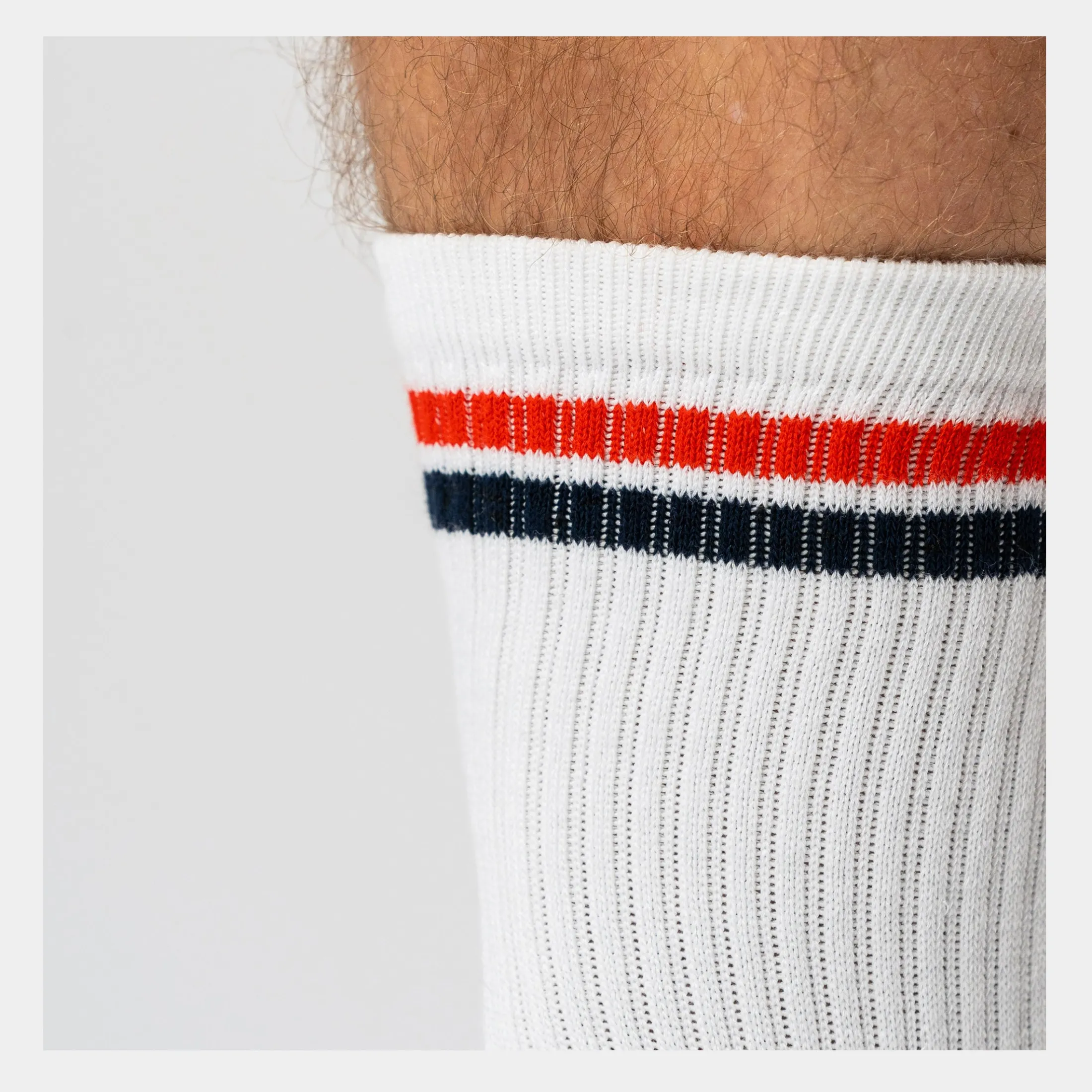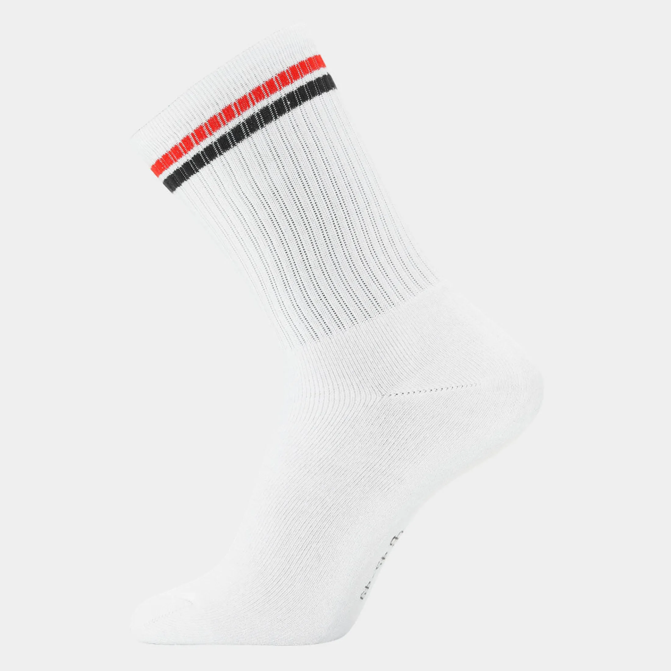 Disse hvide tennisstrømper med røde og navyblå striber til herre og drenge fra Copenhagen Bamboo er utroligt bløde fordi de er fremstillet af bambus. De er specielt velegnede til folk der er på fødderne hele dagen, da undersiden af foden er vævet ekstra tyk. Derudover er strømper af bambus bl.a. svedtransporterende og absorberende, så de holder dine fødder friske hele dagen.