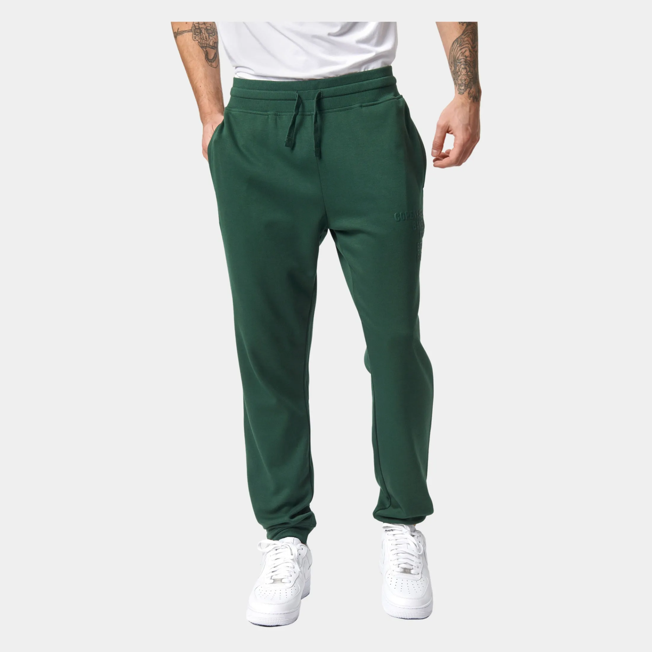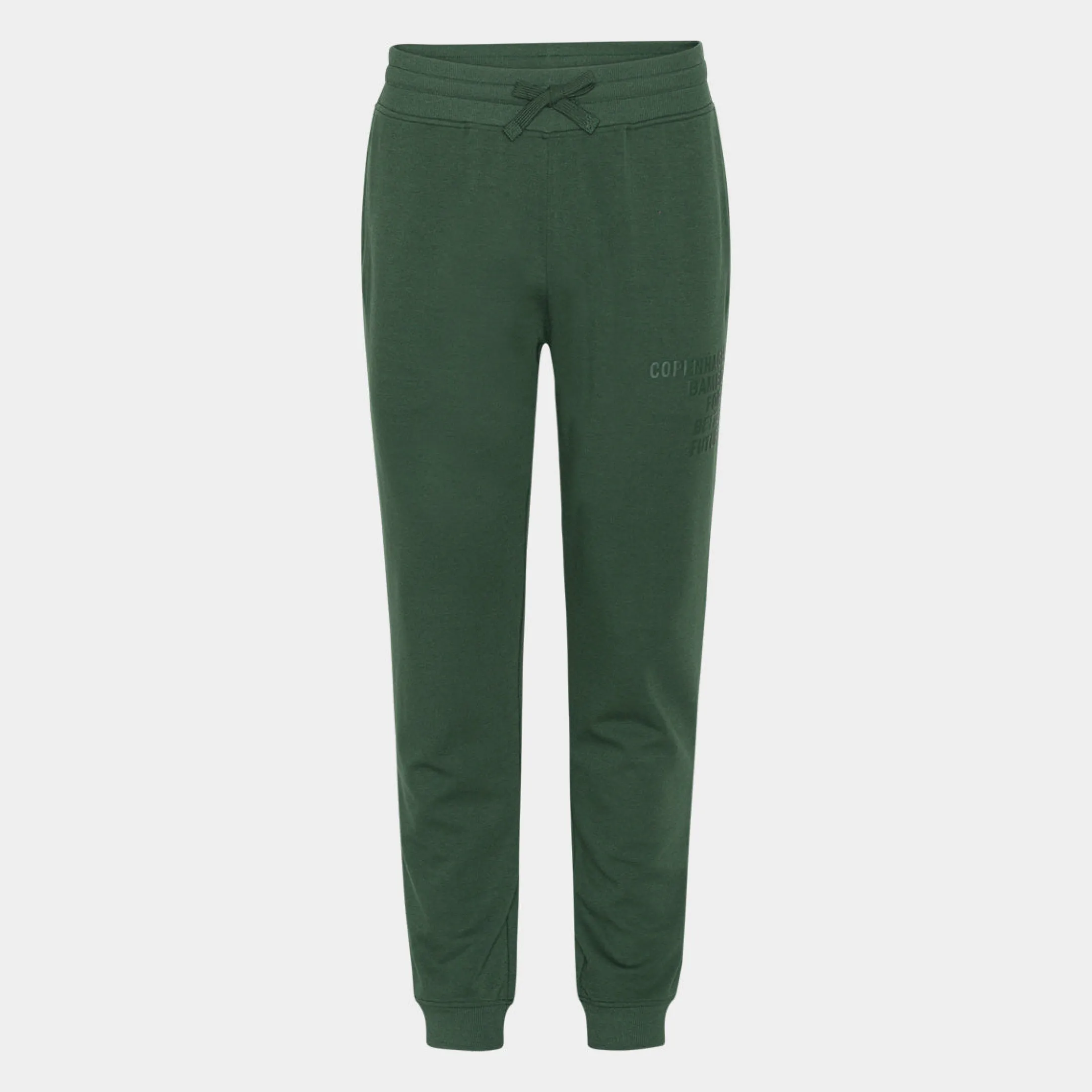Bløde grønne bambus sweatpants med logo på højre lår. Disse sweatpants har lynlås i lommerne, så du slipper for at pung og nøgler falder ud i løbet af dagen. De er fremstillet i bambusviskose, økologisk bomuld og polyester.