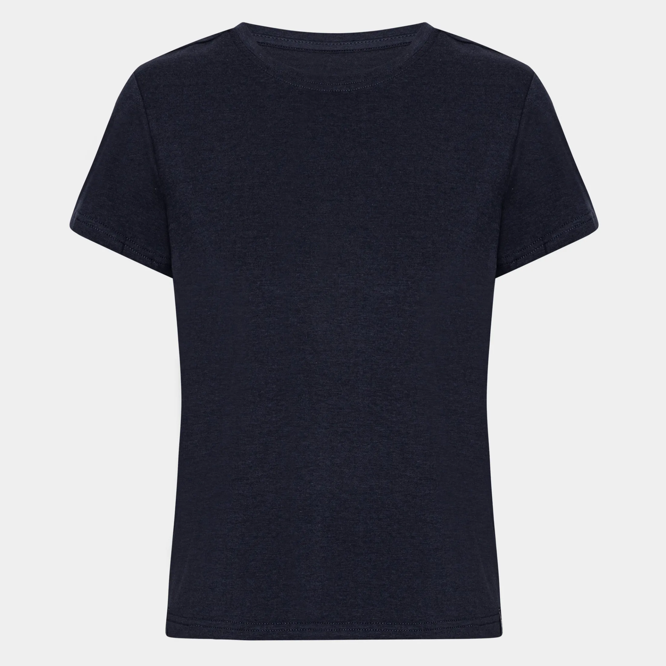 Denne navy kortærmede bambus T-shirt til damer er fremstillet i den blødeste bambus. Bambusfibrene gør T-shirten både åndbar og temperaturregulerende, så den er behagelig at bruge både om sommeren og vinteren.
