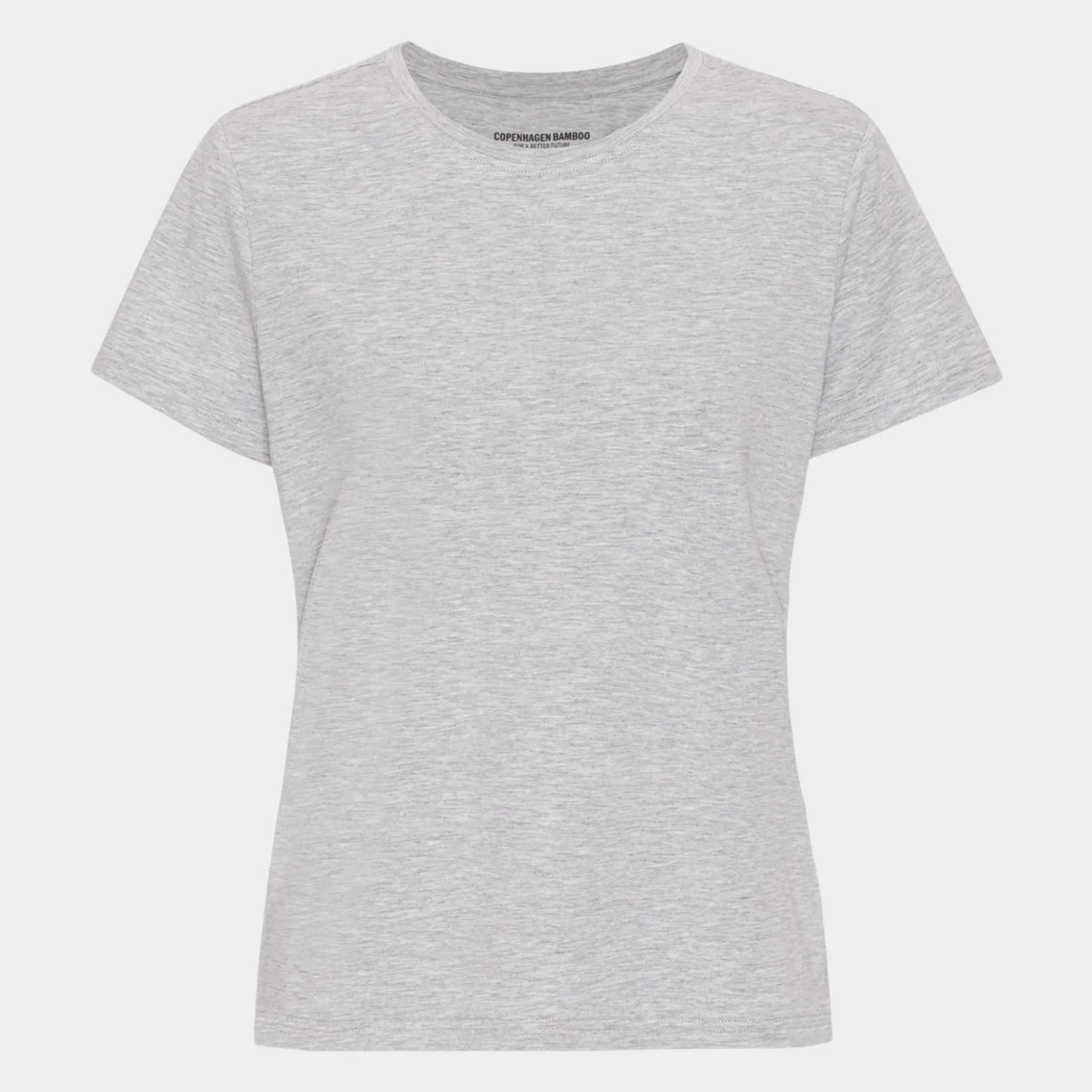 Denne lysegrå kortærmede bambus T-shirt til damer er fremstillet i den blødeste bambus. Bambusfibrene gør T-shirten både åndbar, absorberende og temperaturregulerende, så den er behagelig at bruge både om sommeren og vinteren.