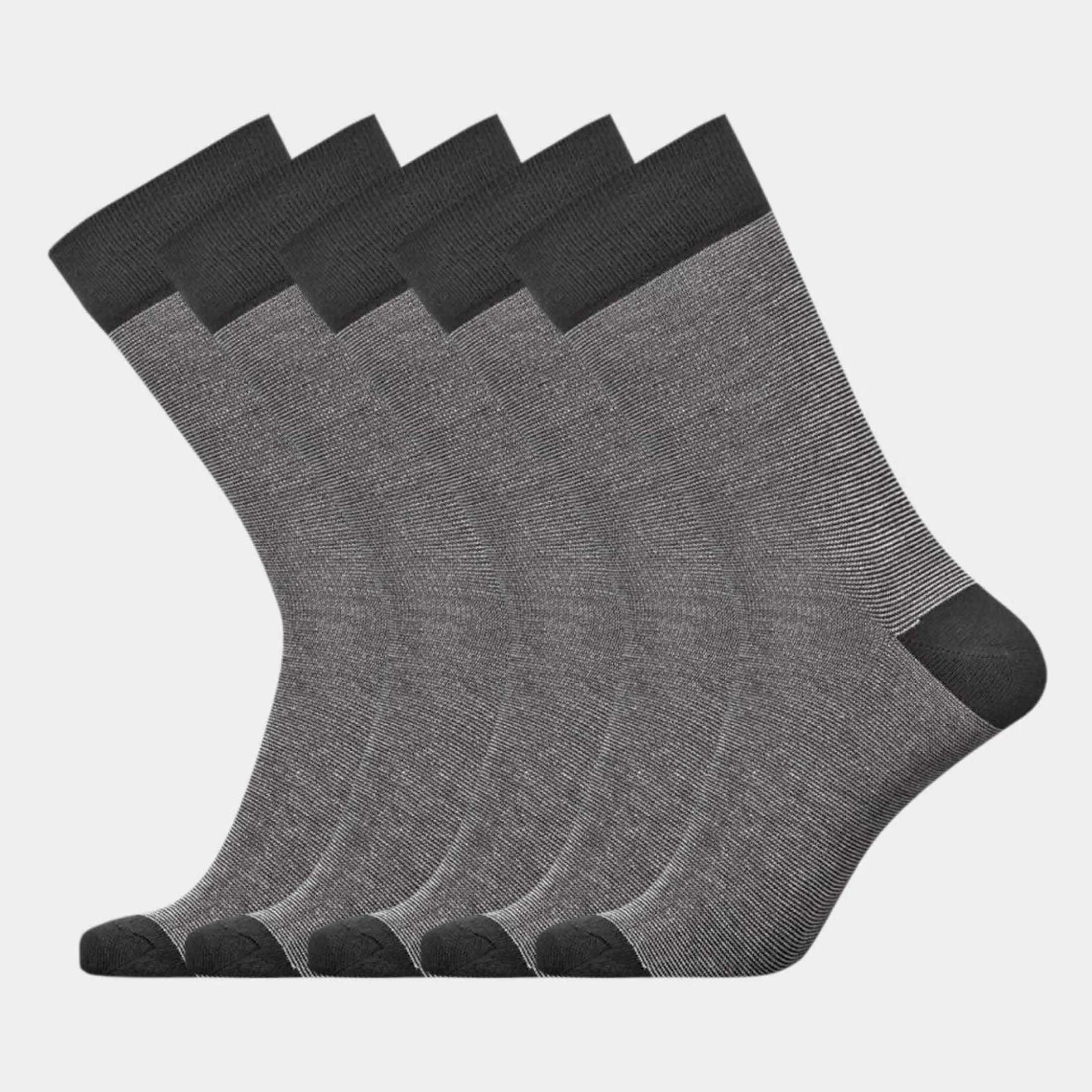 Super fede herre bambus strømper i lækker 5 pak, som er mørkegrå stribet og dejlig bløde at have på. Bambusstrømperne fra Egtved er åndbare.