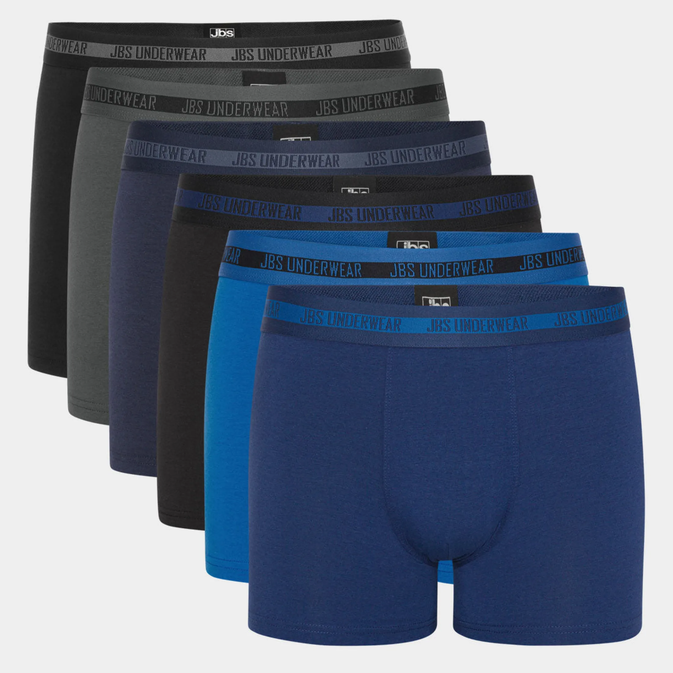 6 pak bambus underbukser fra JBS. 2x sorte, 1x navy, 1x mørkegrå, 1x blå og 1x mørkeblå i super blød bambus. Underbukserne er åndbare og temperaturregulerende, hvilket gør dem behagelige at have på hele dagen.