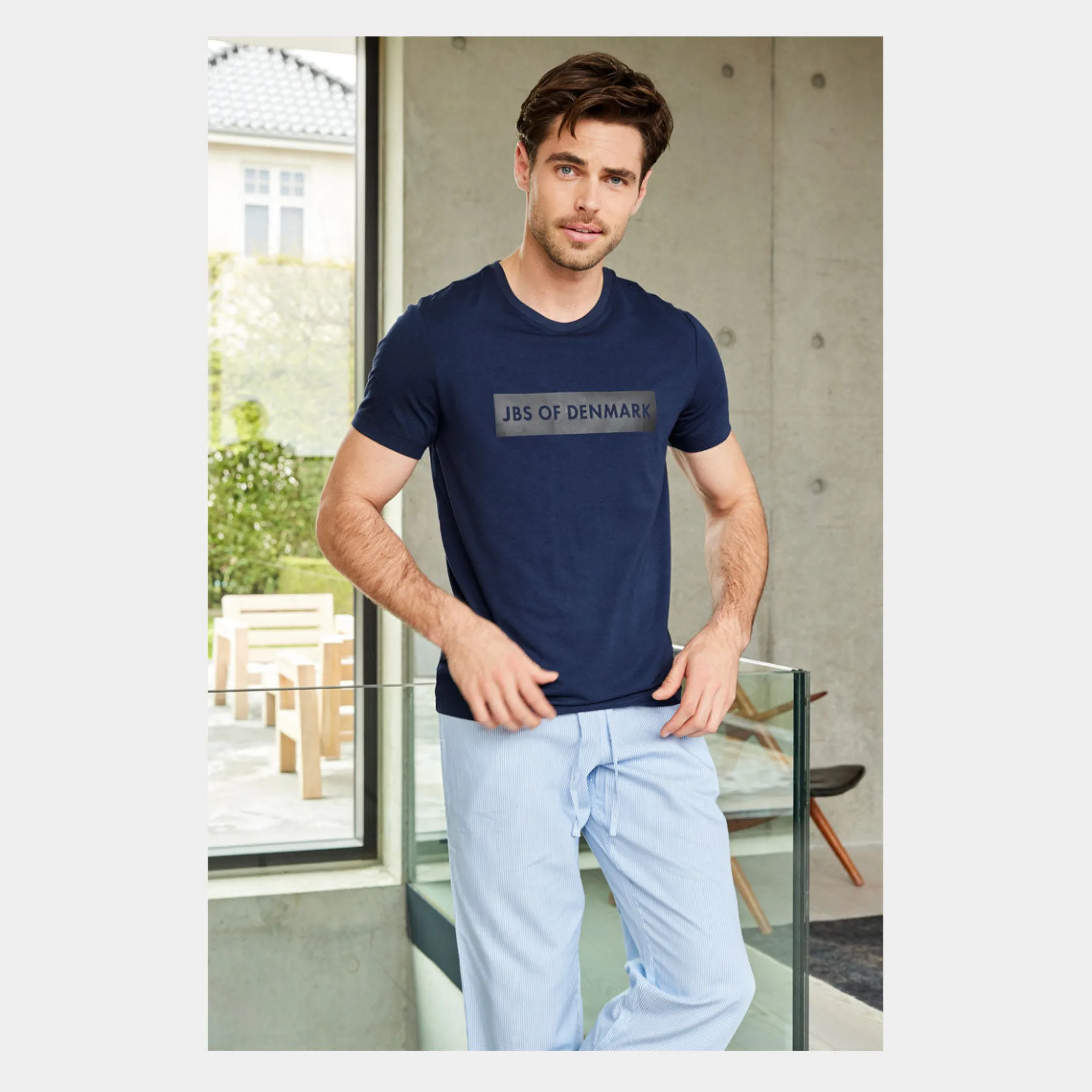Dette er den perfekte T-shirt til herre fra JBS of Denmark. Denne navyblå basic T-shirt med print på brystet er lavet af bambus, som sikrer at den altid er blød og lækker. Den er åndbar og fugttransporterende.