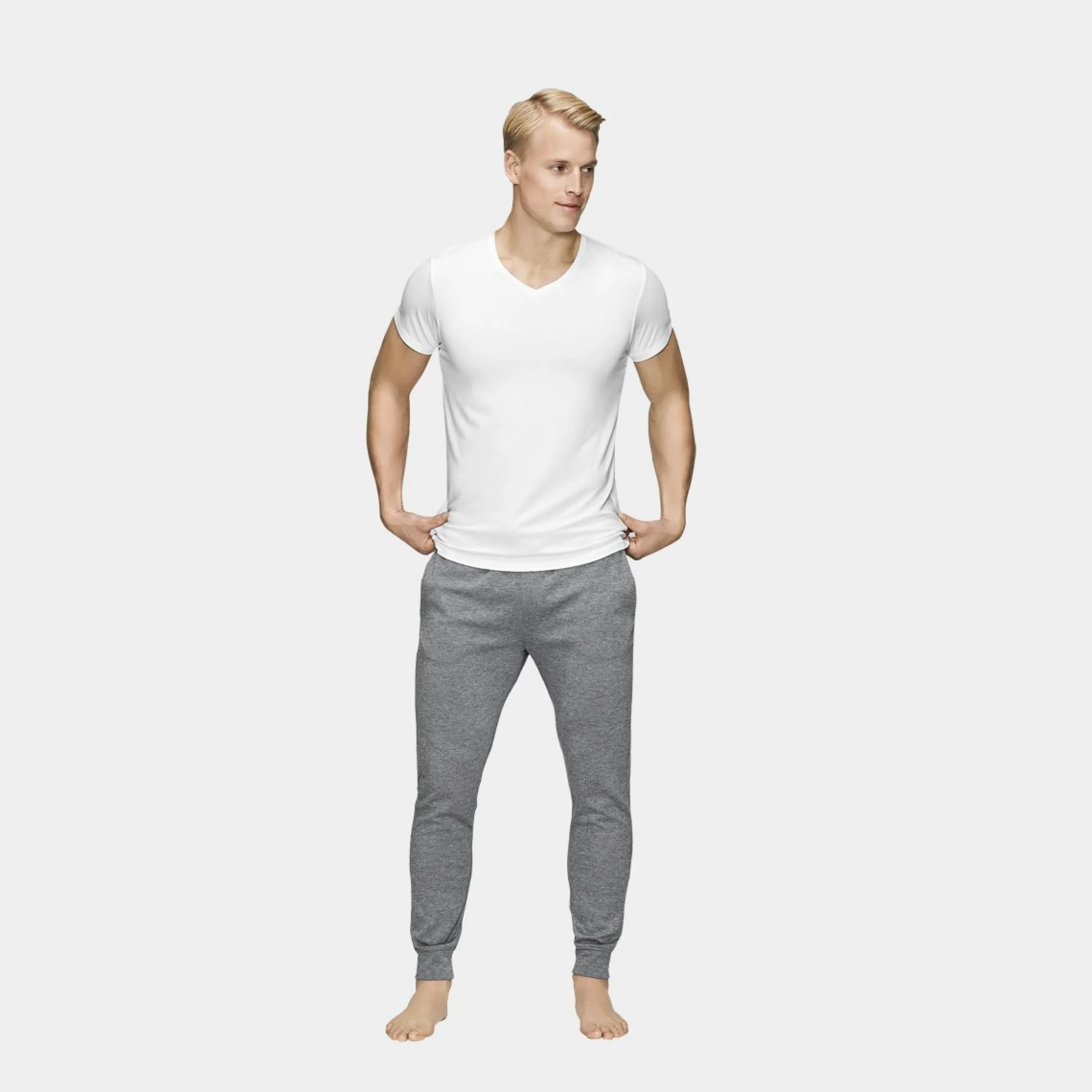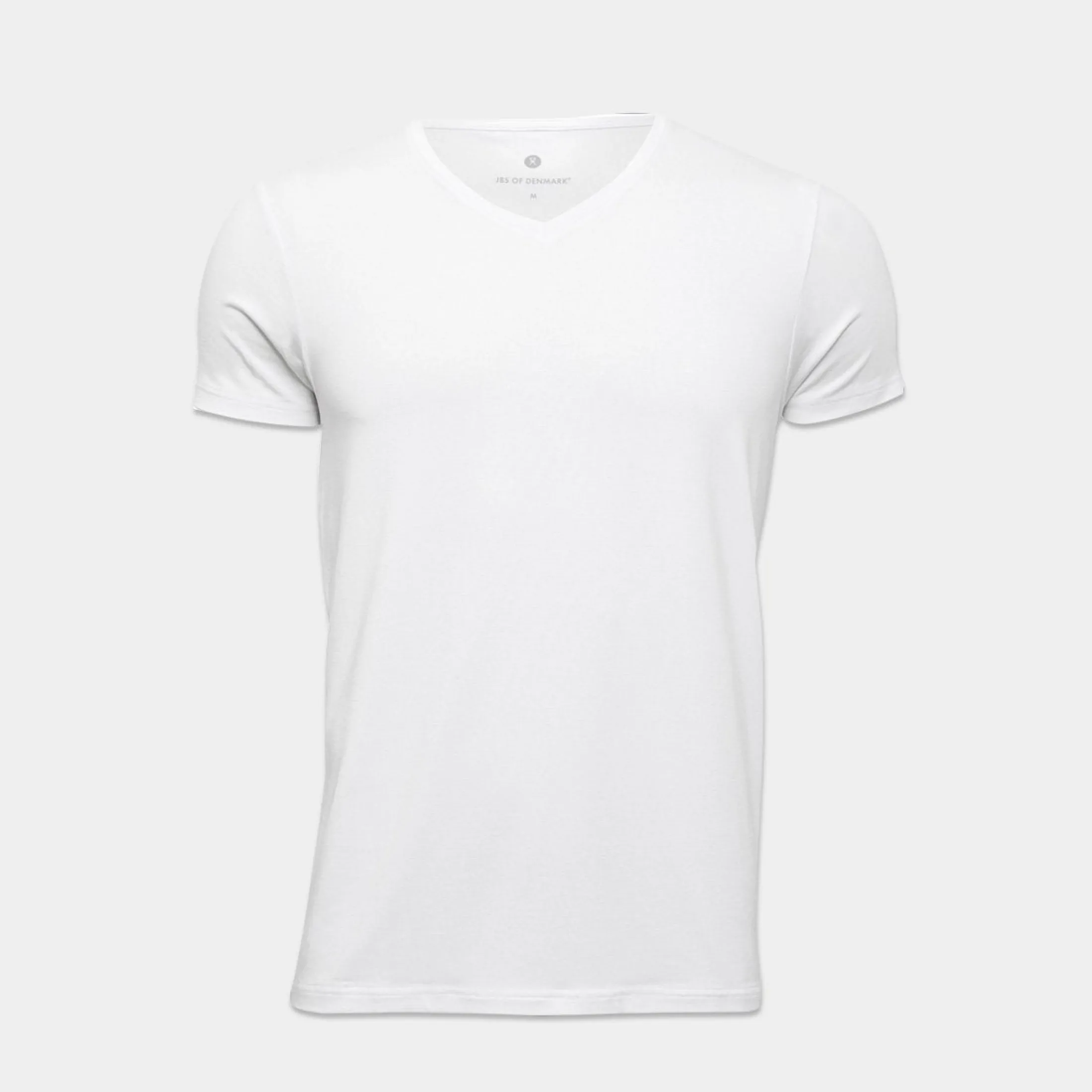 Flot hvid V-hals bambus T-shirt fra JBS of Denmark. En T-shirt som kan bruges alene eller under eksempelvis en trøje. T-shirten er altid blød, let og lækker at have på. Da T-shirten indeholder bambus, er den åndbar, svedtransporterende og temperaturregulerende,