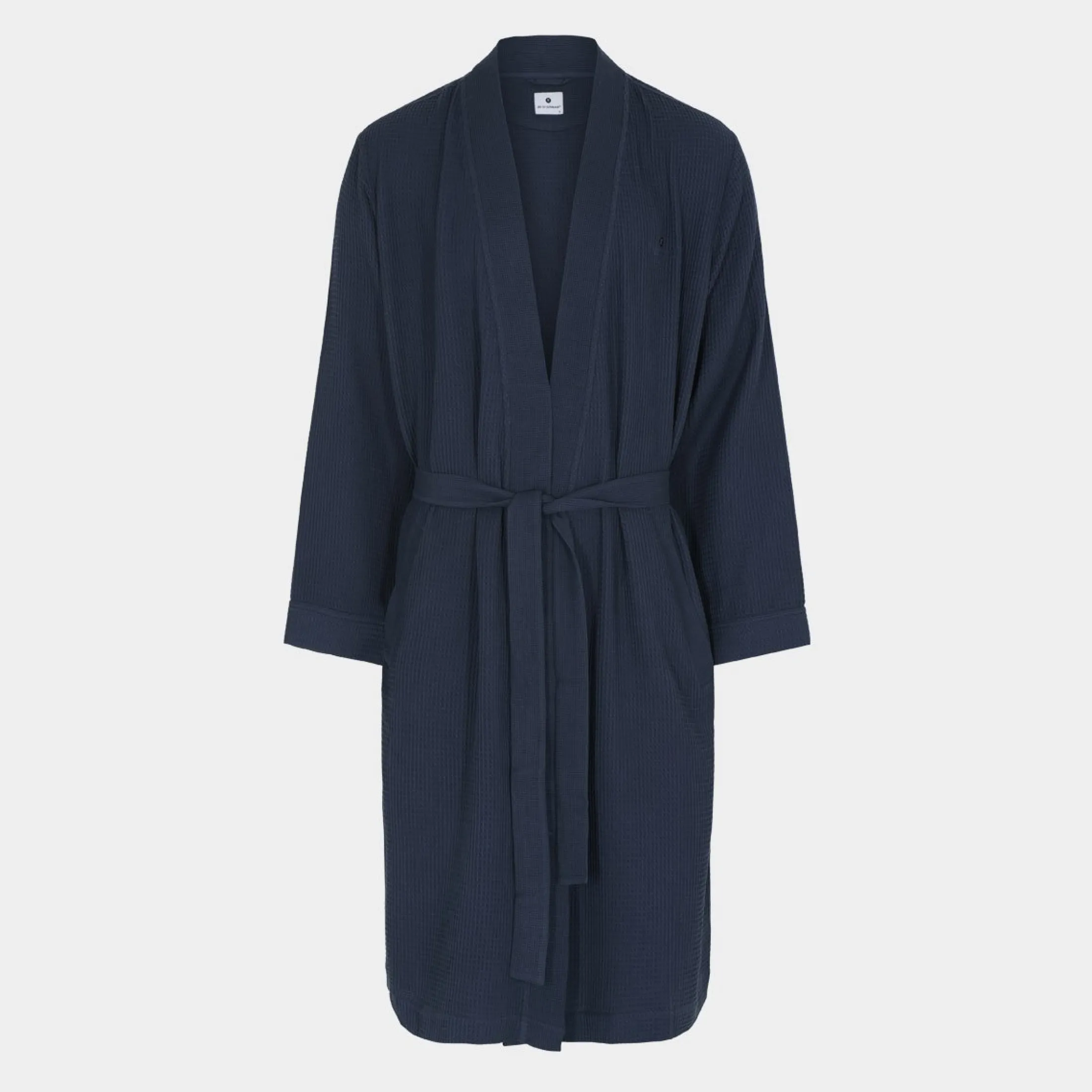 Denne mørkeblå morgenkåbe fra JBS of Denmark er fremstillet i et flot vaffelmønsteret bambustekstil. Den er super blød og perfekt at tage på når du står op om morgenen eller når du kommer ud af badet.