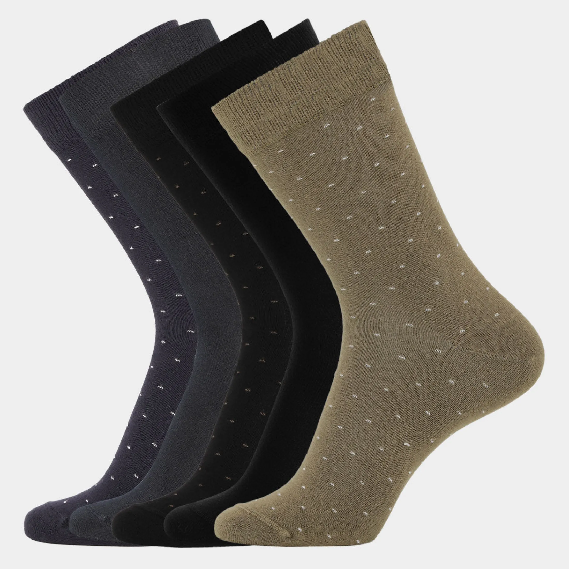 I denne pakke får du 1 par sorte strømper, 1 par navy og 3 par med små prikker.