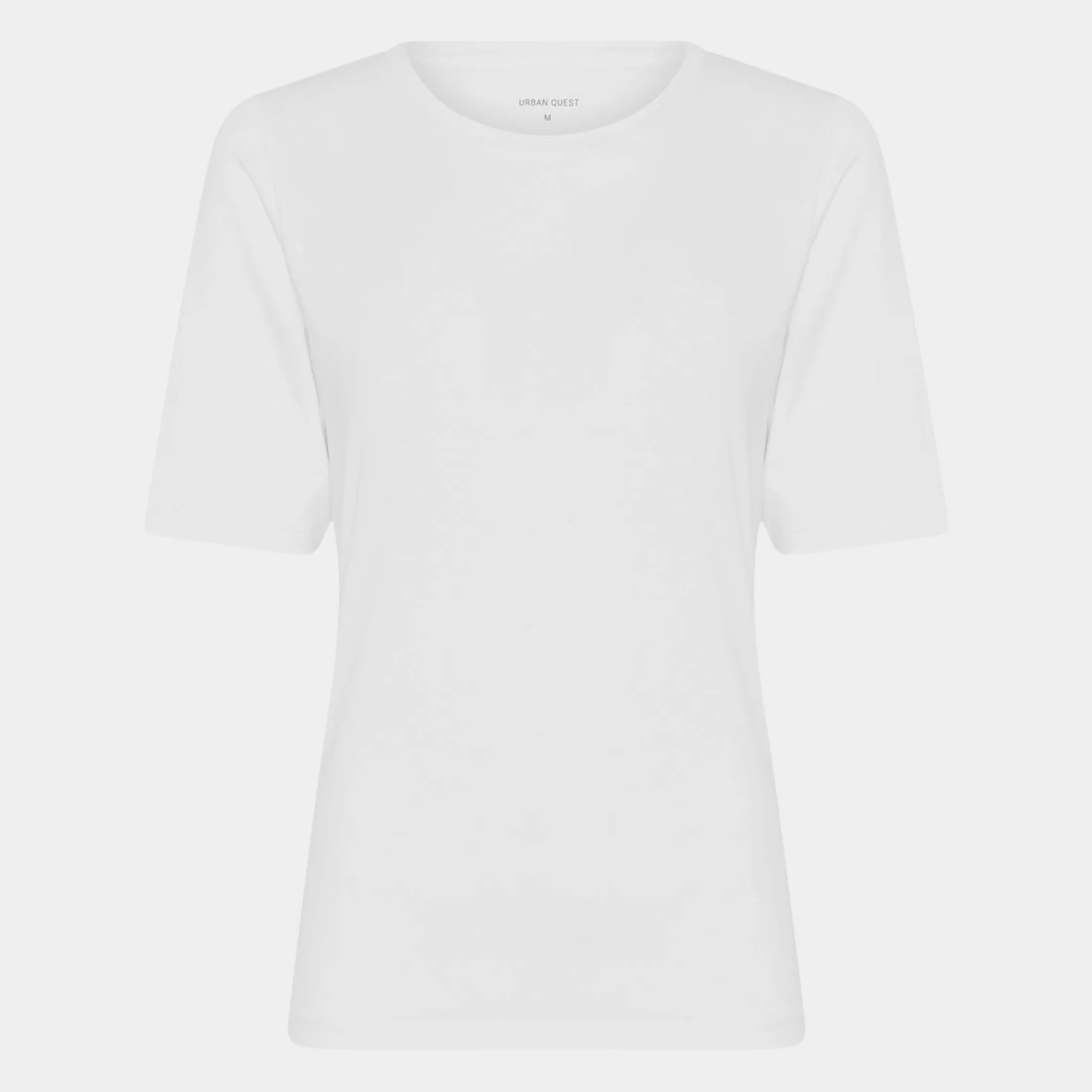 Denne hvide bambus slim fit t-shirt til kvinder fra Urban Quest, er fremstillet i en lækker viskoseblanding med økologisk bomuld og elastan, som giver et godt behageligt fit.